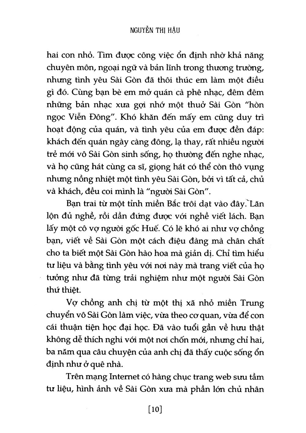 Sài Gòn biết nhiều người sống với mình vẫn luôn nhớ nhung một cõi quê xa. Có sao đâu, vì Sài Gòn cũng biết tình cảm mọi người dành cho mình, không bằng ngôn từ bóng bẩy mà cụ thể hơn, đó là ở thành phố này mỗi người đều sống hết mình và rồi sẽ trở thành người Sài Gòn. Có tình yêu nào sâu nặng hơn như thế?