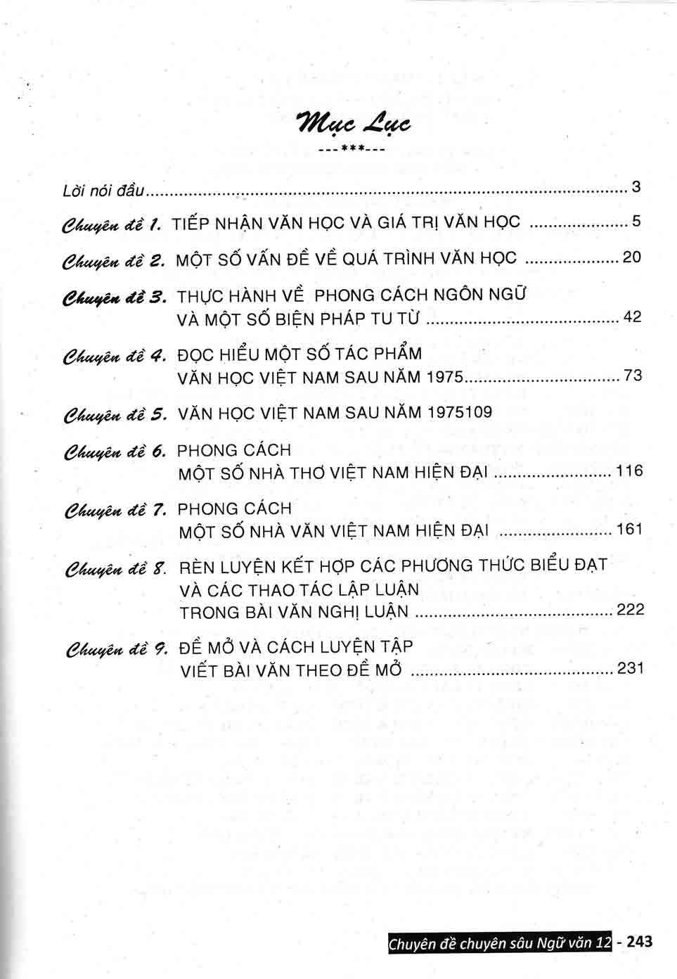 Cuốn sách tham khảo ngữ văn này được chia thành 9 chuyên đề :