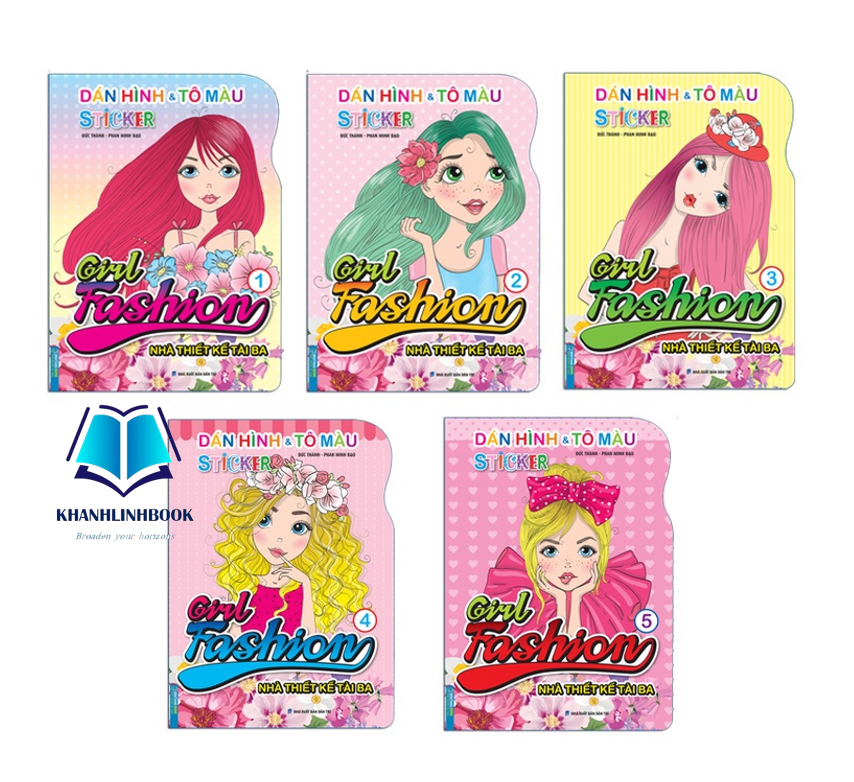 Sách - Combo 5c - Dán hình & tô màu STICKER Girl Fashion nhà thiết kế tài ba trọn bộ