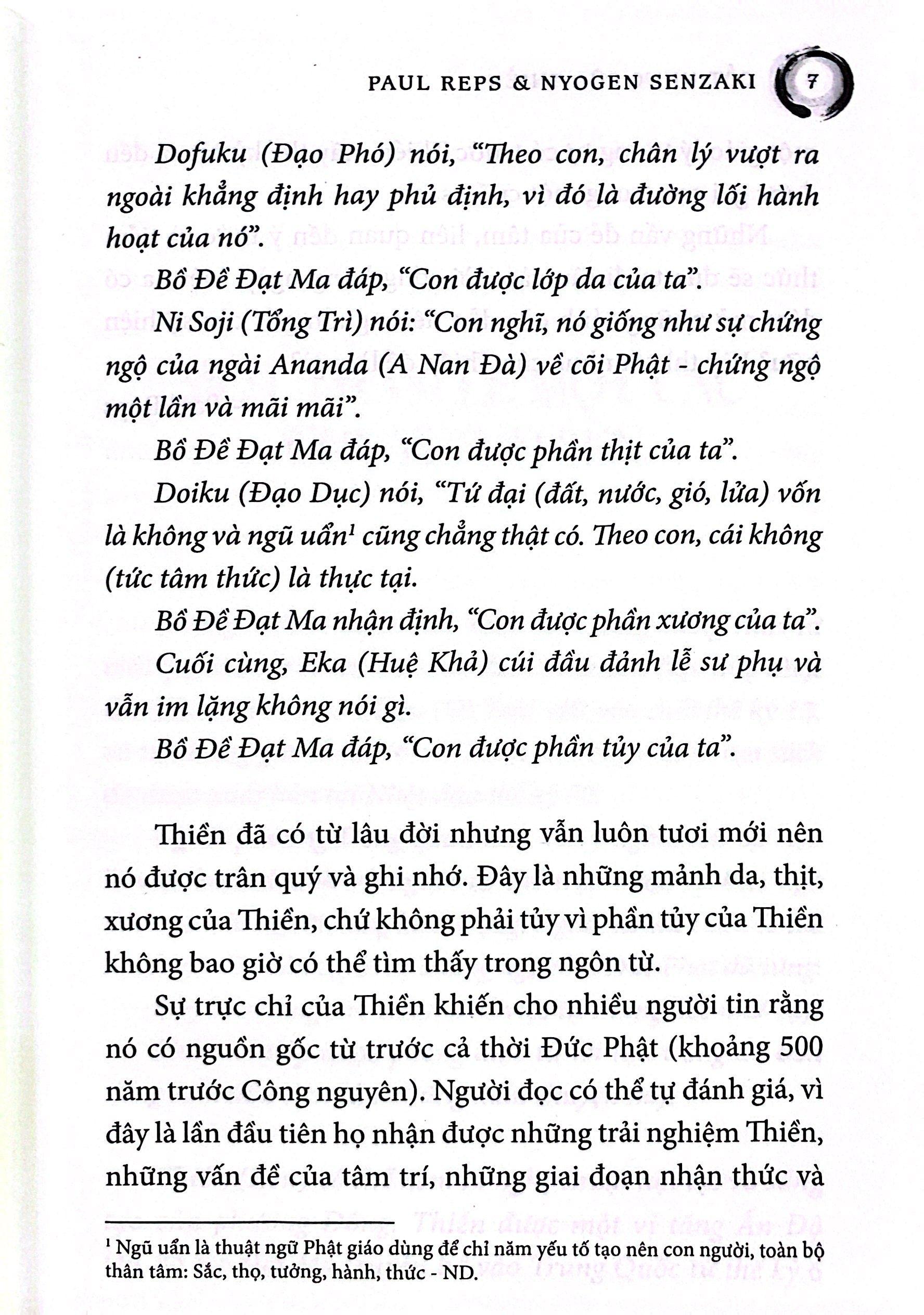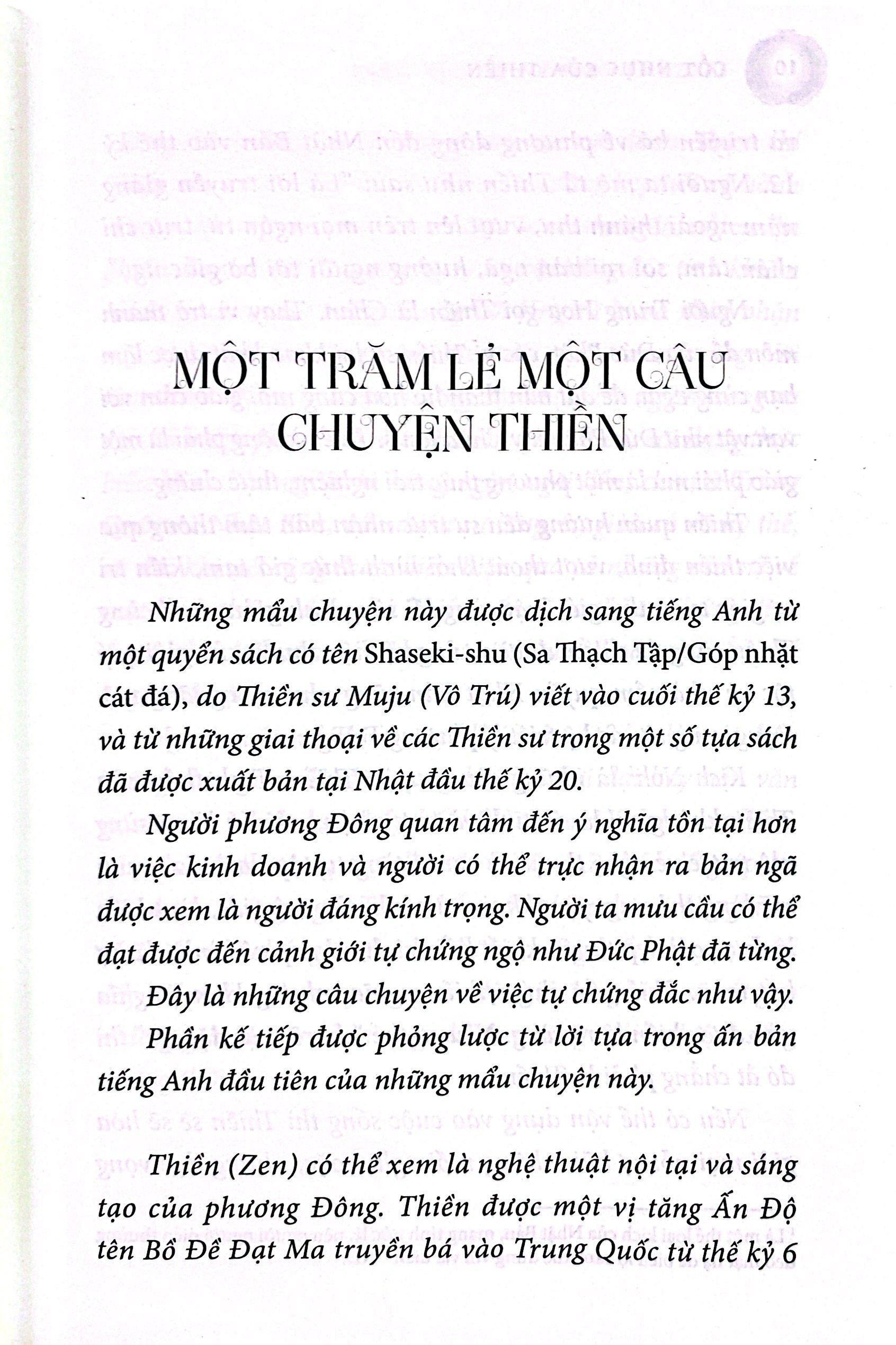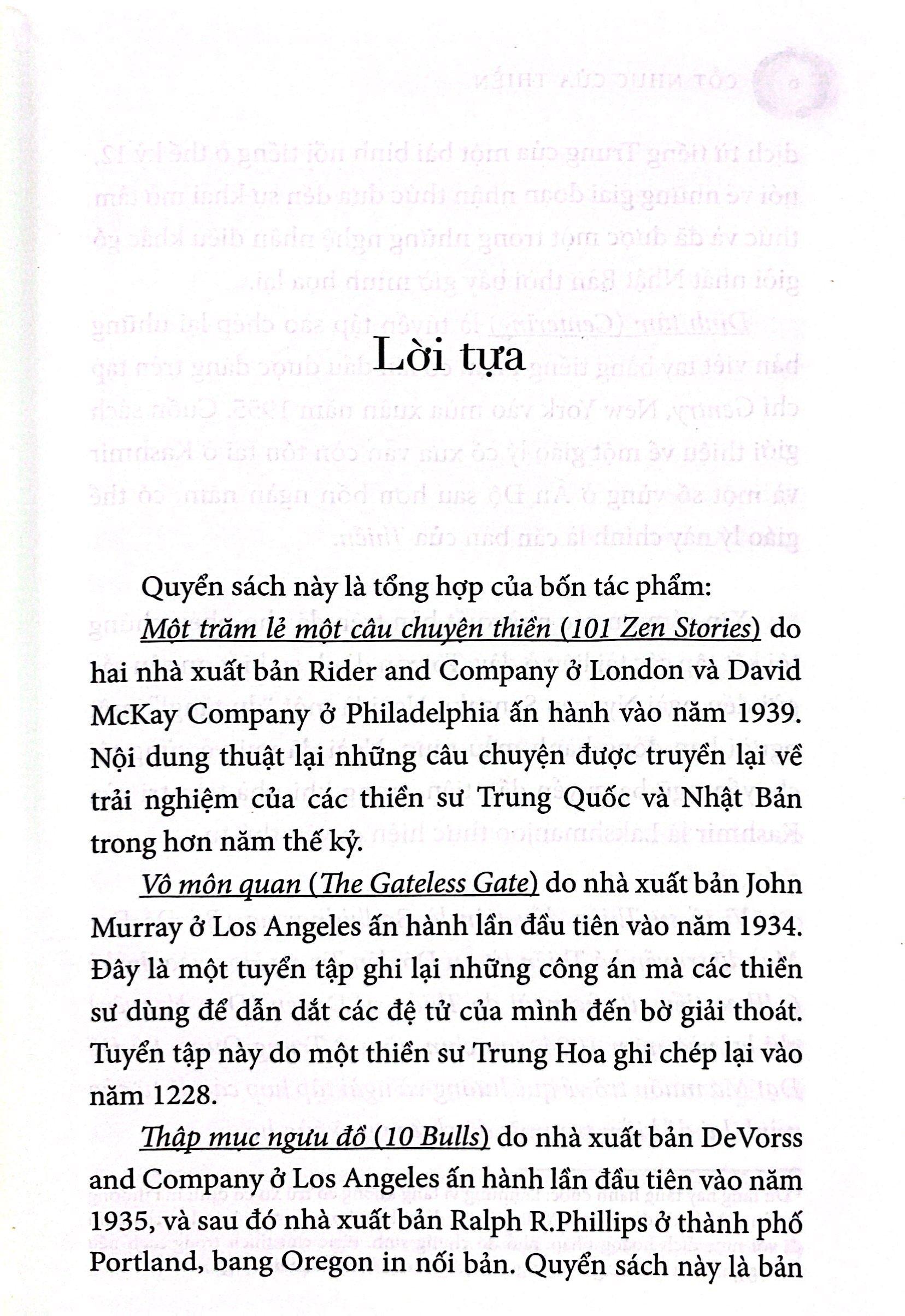 CỐT NHỤC CỦA THIỀN là tập hợp bốn quyển sách kinh điển trọng yếu về Thiền, là Thiền trong sự vô Thiền như kinh sách thường hướng đến. Một trăm lẻ một câu chuyện thiền thuật lại trải nghiệm cách đây hơn năm thế kỷ của các thiền sư Trung Hoa và Nhật Bản. Vô môn quan bao gồm những công án của thế kỷ 13, dùng cho thiền tập. Thập mục ngưu đồ là bài bình có từ thế kỷ 12, nói về những giai đoạn nhận thức dẫn đến giác ngộ. Cuối cùng là Định tâm, một giáo lý bốn ngàn năm tuổi của Ấn Độ, sẽ mang đến cho chúng ta những điều mà một số người coi đó là nguồn cội của Thiền.Khi quyển sách này xuất bản lần đầu vào năm 1957, nó đã trở thành kim chỉ nam cho cả một thế hệ những người tầm đạo phương Tây mới bắt đầu khám phá về Thiền. Trong nhiều năm, nó đã luôn truyền cảm hứng cho các thiền sư, môn sư và hành giả người Mỹ cho đến tận ngày nay. Xin hoan hỷ tham gia cùng với họ.
