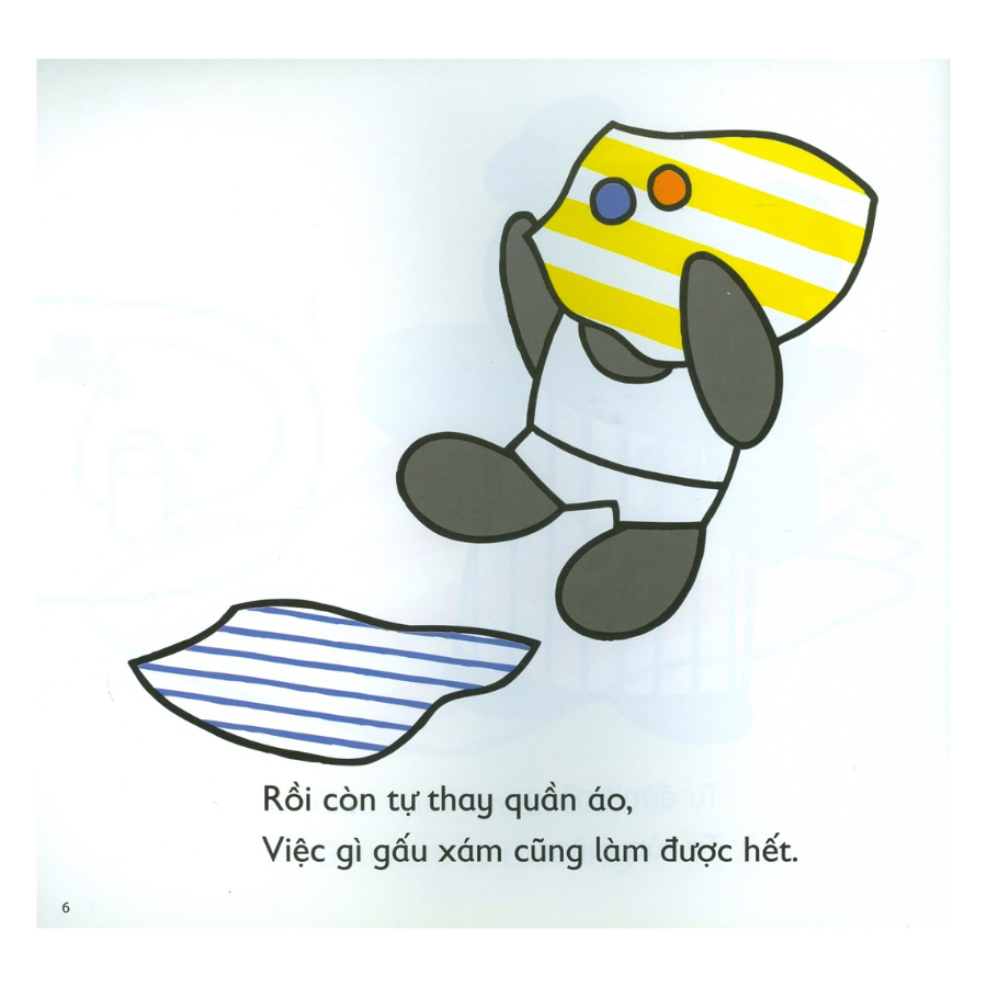Câu chuyện kể về sinh nhật của gấu xám. Vậy là gấu xám tròn bà tuổi rồi. Gấu xám tự thức dậy, đánh răng, rửa mặt, thay quần áo, dùng thía múc thức ăn, dọn đồ sau khi ăn, vẽ tranh, chơi cùng gấu trắng. Việc nào khó thì gấu xám nhờ mẹ giúp đỡ. Gấu xám cũng mời gấu trắng tới dự tiệc sinh nhật nữa. Rồi các bạn cùng mở qua và chung vui sinh nhật với mọi người.