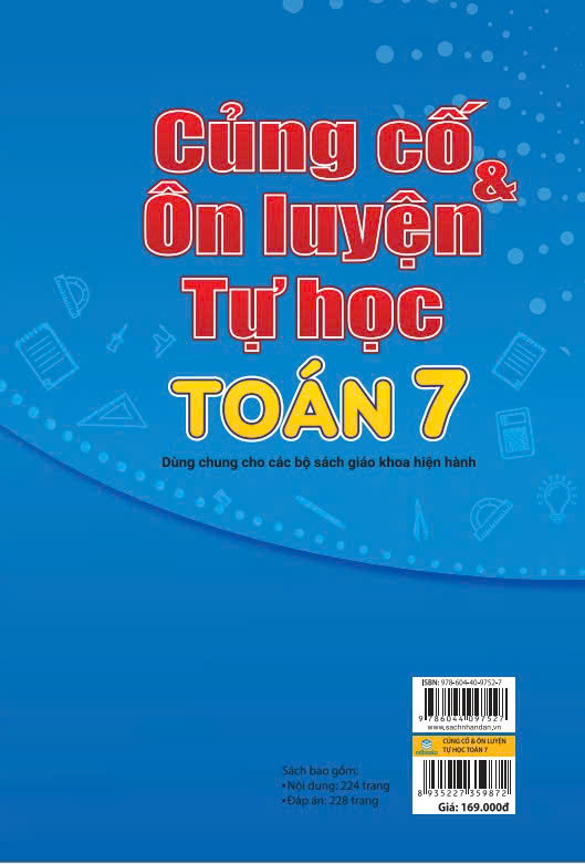 Thông số kỹ thuật Sách - Củng Cố Và Ôn Luyện Tự Học Toán 7 - Dùng chung cho các bộ SGK hiện hành - ndbooks