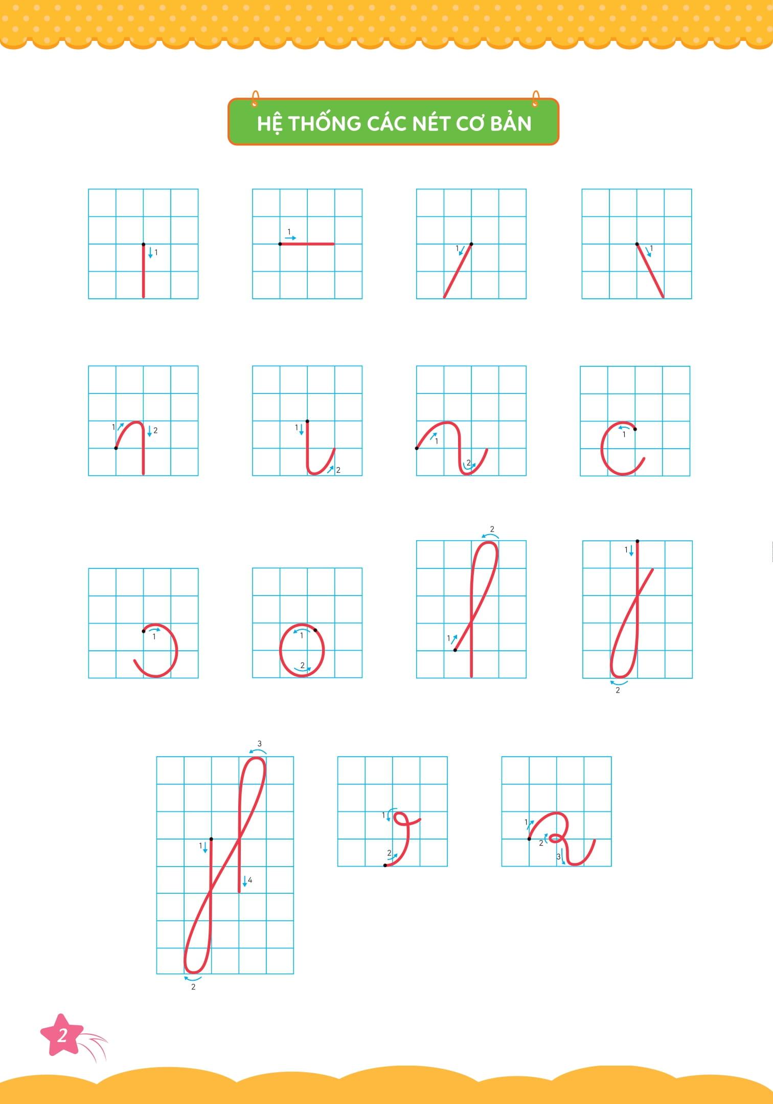 2. Con được học các nét cơ bản như: Nét sổ thẳng, nét xiên trái, nét móc trên,… . Luyện kỹ những nét cơ bản là tiền đề để con luyện chữ khi vào lớp 1