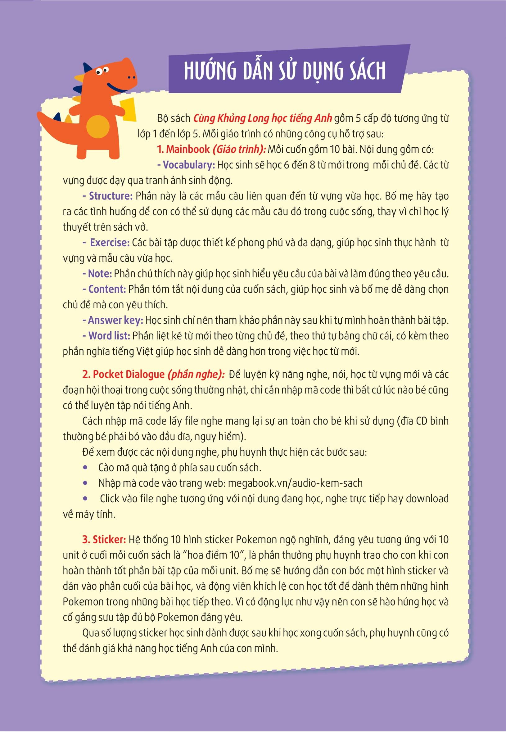 Cùng Khủng Long Học Tiếng Anh Theo Chủ Đề (Tái bản) là bộ sách đầu tiên tại Việt Nam được viết theo tiêu chuẩn Quốc tế dành cho học sinh Tiểu học (từ 5 đến 12 tuổi). Bộ sách được xây dựng để các con có thể tự học tiếng Anh tại nhà dưới sự kèm cặp của cha mẹ mà không phải đến những trung tâm tiếng Anh đông người mà hiệu quả học tập không cao.