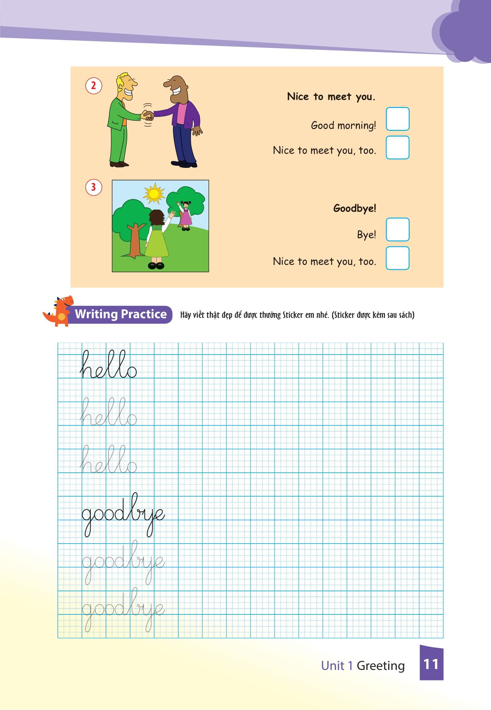 - Luyện viết chữ đẹp các từ tiếng Anh.Nắm được những cấu trúc câu chào hỏi, giao tiếp đơn giản nhất, biết đặt những câu hỏi “What” và “Who” (“cái gì”, “ai”)…