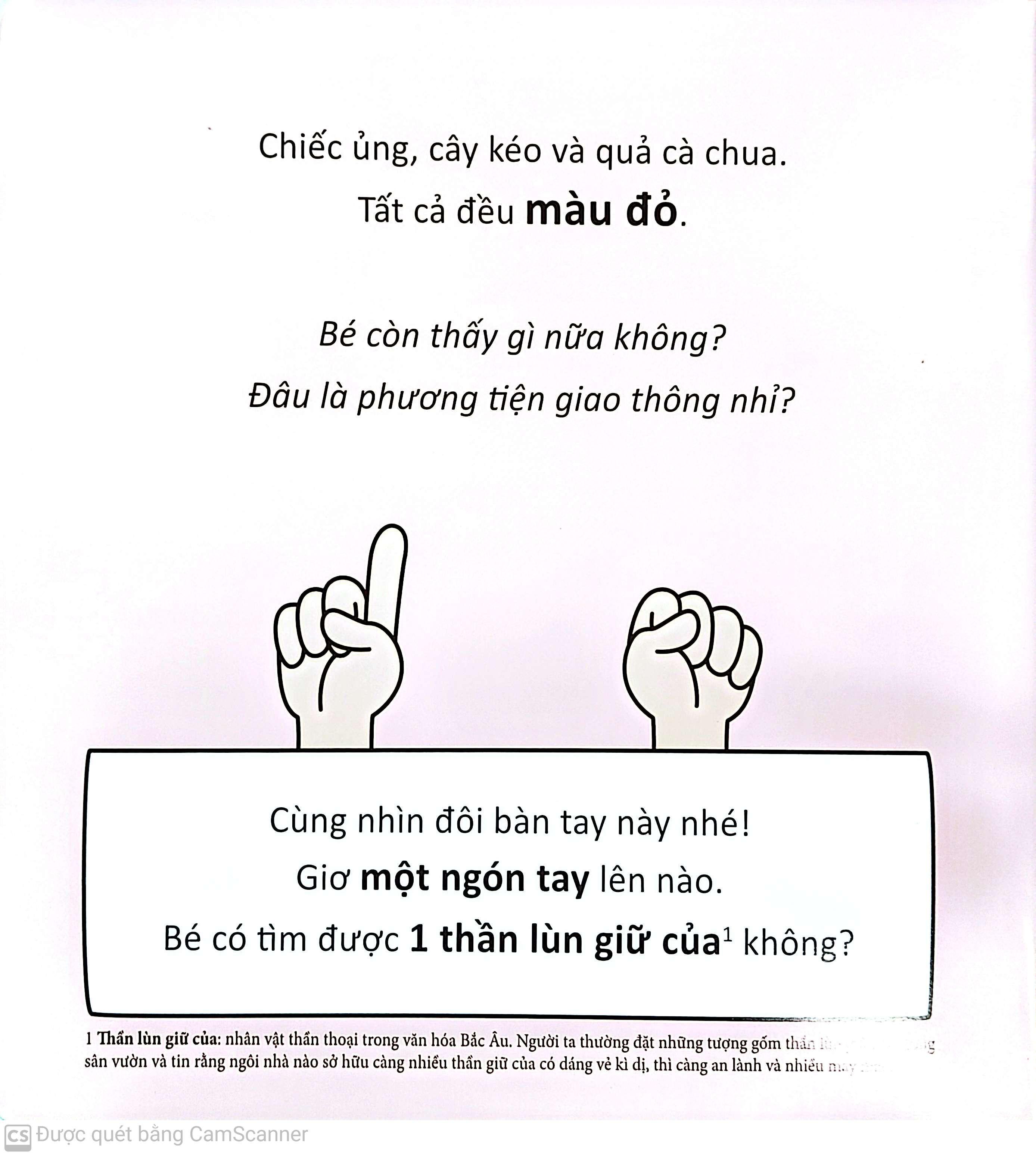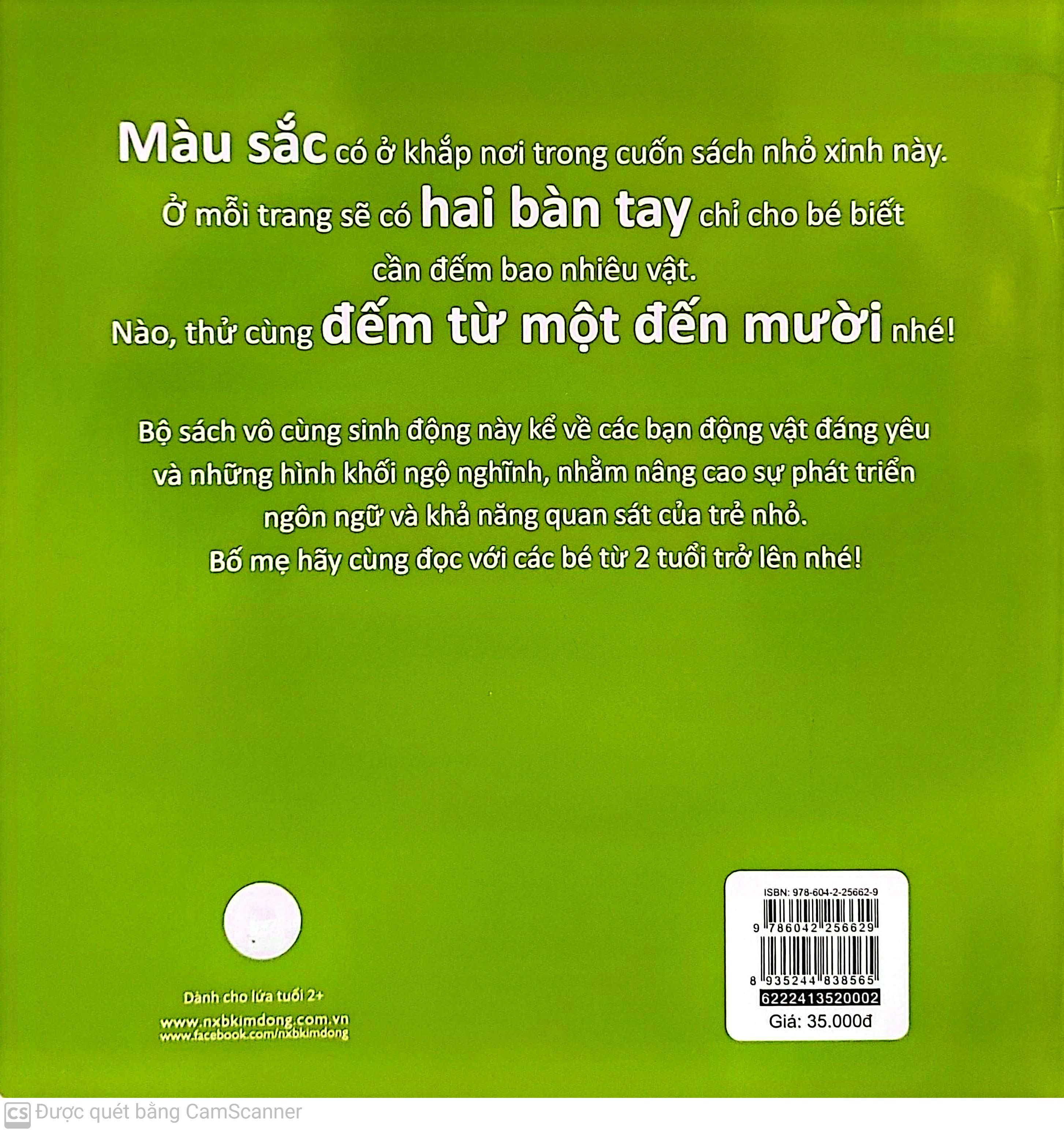 Màu sắc có ở khắp nơi trong cuốn sách nhỏ xinh này. Ở mỗi trang sẽ có hai bàn tay chỉ cho bé biết cần đếm bao nhiêu vật. Nào, thử cùng đếm từ một đến mười nhé!