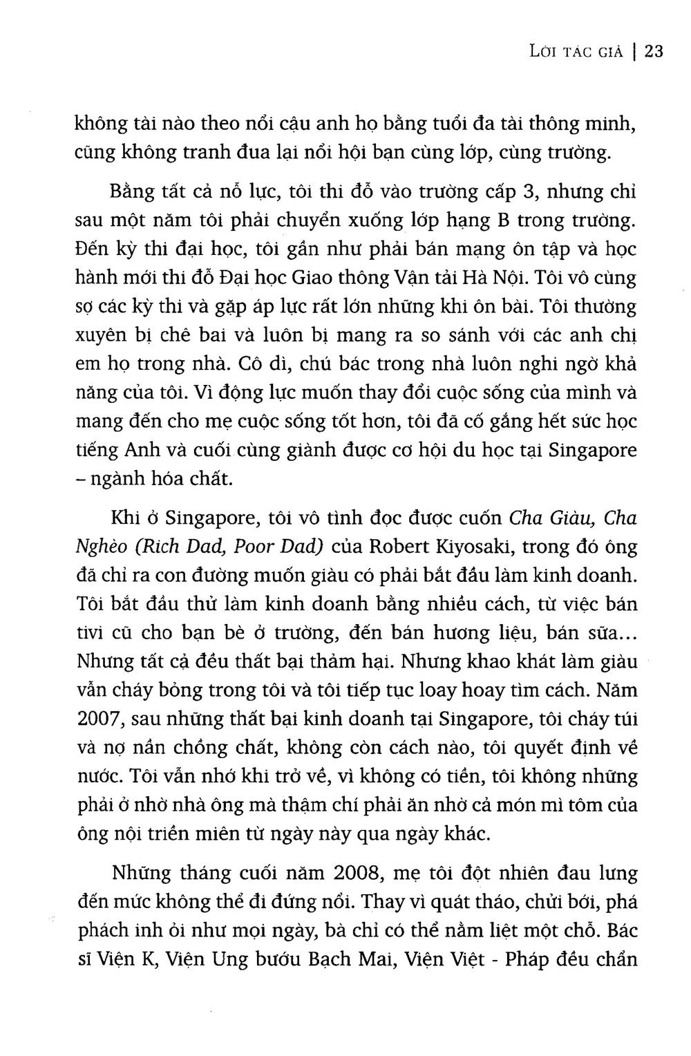 Với tâm huyết và sứ mệnh chia sẻ để giúp người Việt Nam giàu có hơn nữa, ông đã đưa ra những kinh nghiệm thực tế và kiến thức quý báu vào trong cuốn sách này. Cuốn sách dành cho những ai đang là sinh viên, hay bất cứ cá nhân nào đang tìm kiếm tự do tài chính và giàu có với người khởi nghiệp, bác sĩ, kiến trúc sư Hãy đọc cuốn sách để đến gần hơn với sự giàu có bền vững cho bạn và gia đình.