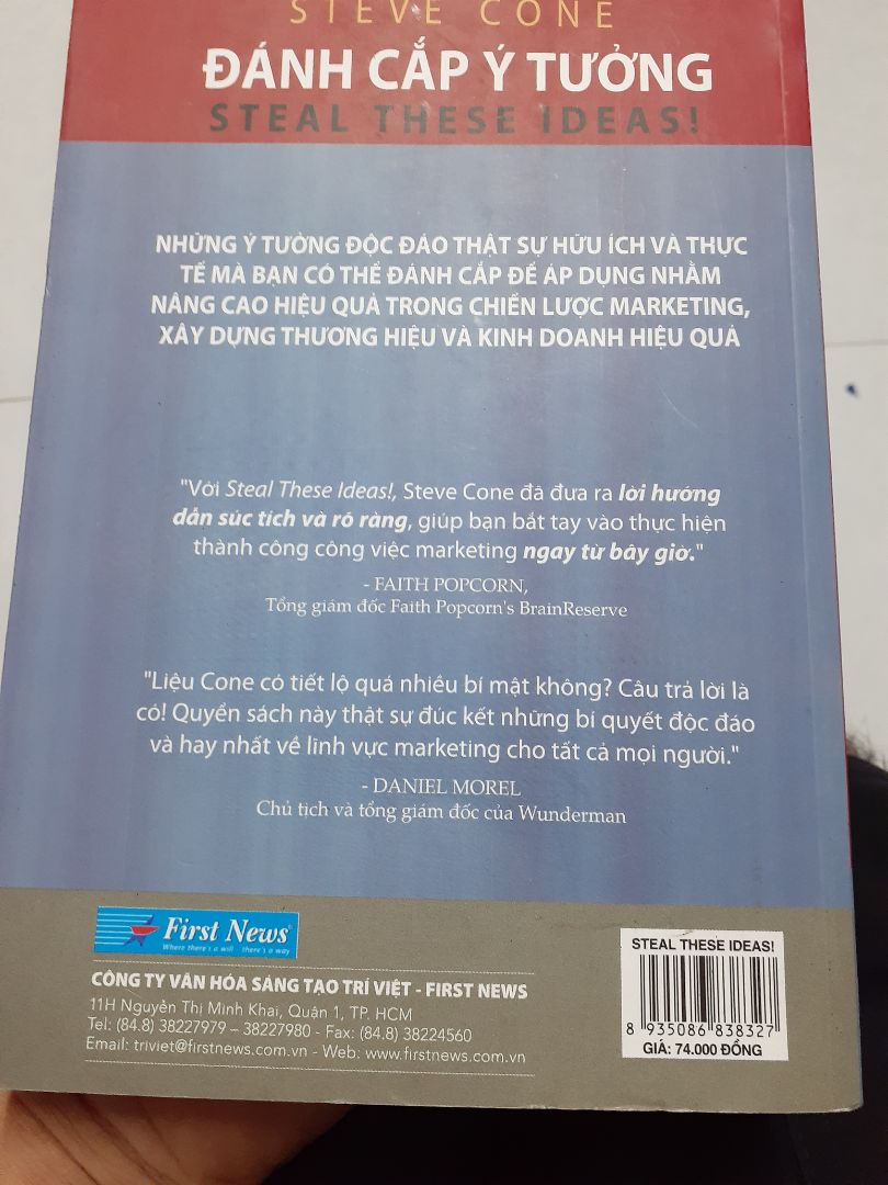 Tôi thật sự hy vọng các bạn sẽ yêu thích quyển “Steal These Ideas” được các bạn tôi tại First News xuất bản và phát hành. Mong rằng các bạn sẽ tìm thấy nhiều ý tưởng tuyệt vời có thể giúp công việc kinh doanh của mình thành công hơn. Quyển sách này hầu như chứa đựng tất cả những khía cạnh quan trọng của hai lĩnh vực marketing và thương hiệu, tôi hy vọng những bí quyết này sẽ giúp cho các bạn tiến về phía trước với những thành công rực rỡ hơn.”