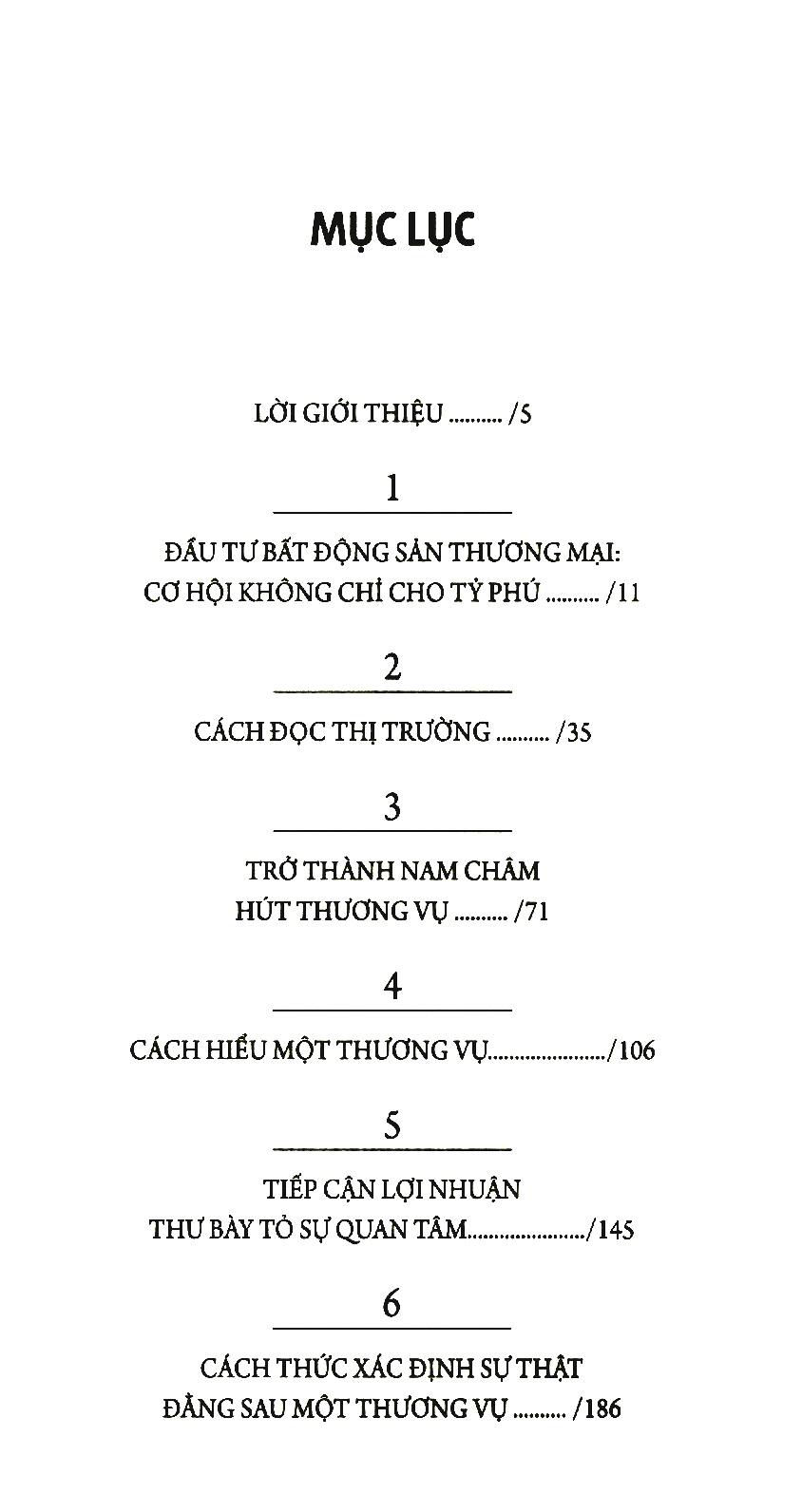Hy vọng rằng cuốn sách sẽ là cẩm nang hoàn hảo cho tất cả những ai muốn thăng tiến trong sự nghiệp kinh doanh bất động sản bởi nó mang đến những lời khuyên kinh doanh thực tế dựa trên những điều mà độc giả không thể tìm thấy trong bất cứ trường kinh doanh nào – đó chính là kinh nghiệm.