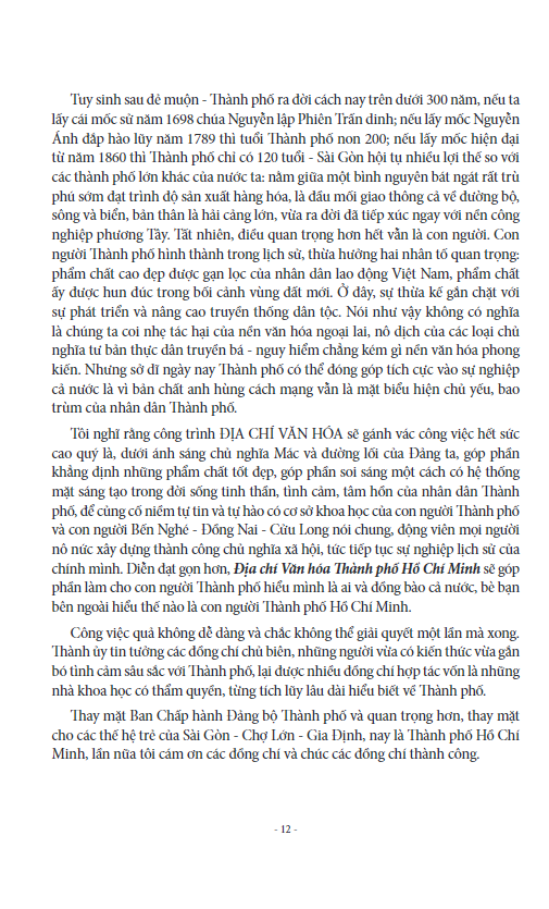 Để đáp ứng nhu cầu của bạn đọc, nhân kỷ niệm 320 năm Sài Gòn - Thành phố Hồ Chí Minh (1698 - 2018), NXB Tổng hợp TPHCM tái bản trọn bộ "Địa chí Văn hóa Thành phố Hồ Chí Minh".