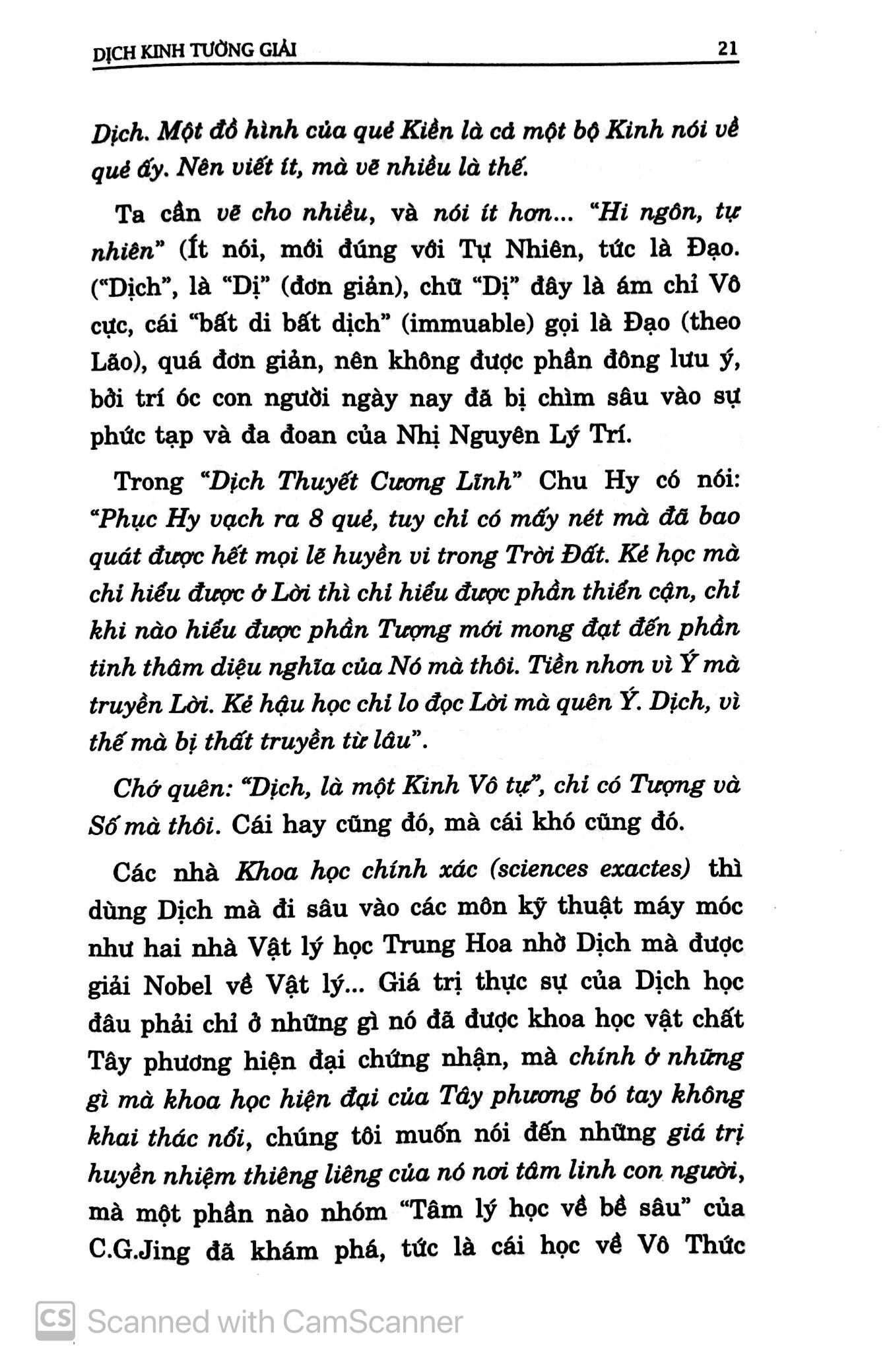 "Khía cạnh quan trọng nhất của Kinh dịch là chỉ lối đưa đường cho con người xây dựng một cuộc nhân sinh lý tưởng, một xã hội tự do cho những con người tự do." Cám ơn nhà xuất bản trẻ với bộ sách giá trị của học giả Thu Giang Nguyễn Duy Cần.