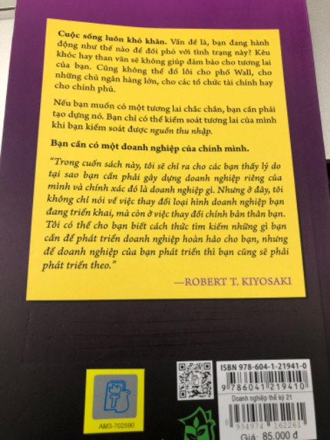 Một quyển sách khác của tác giả bộ sách nổi tiếng Dạy con làm giàu. Trong cuốn sách này, Robert T. Kiyosaki sẽ chỉ ra cho bạn đọc thấy lý do tại sao mình cần phải gây dựng doanh nghiệp riêng của mình và chính xác đó là doanh nghiệp gì. Nhưng đây không phải là việc thay đổi loại hình doanh nghiệp mình đang triển khai mà đó là việc thay đổi chính bản thân. Tác giả còn cho bạn đọc biết cách thức tìm kiếm những gì mình cần để phát triển doanh nghiệp hoàn hảo, nhưng để doanh nghiệp của mình phát triển thì mình cũng sẽ phải phát triển theo.