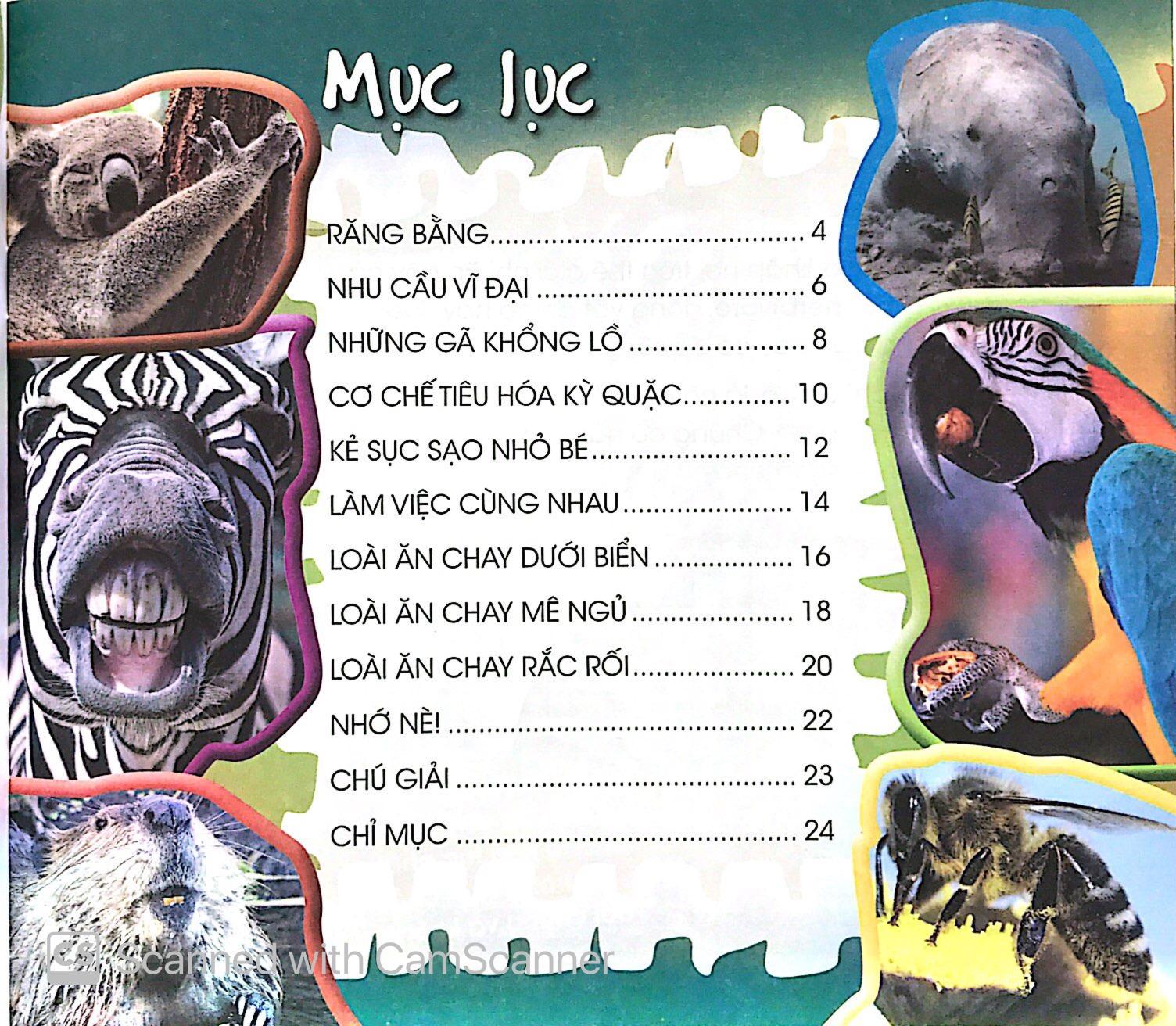 Bộ sách gồm 12 tựa: Thú con bé bỏng; Loài ăn chay; Thợ săn lành nghề; Động vật có vú dưới biển; Loài thú có túi; Những kẻ khổng lồ trong vương quốc động vật; Quan hệ sống còn; Giấc ngủ muôn hình; Lữ khách thường niên; Vị khách không mời; Kỹ năng tuyệt đỉnh; Bên bờ tuyệt chủng, mang đến những thông tin khoa học đơn giản mà thú vị về các loài động vật trong tự nhiên từ đặc điểm cấu tạo cho đến tập tính sinh hoạt với ảnh chụp sắc nét và sinh động. Tập sách này giới thiệu về loài thú có cấu tạo cơ thế cực thích hợp với chế độ "ăn chay", hình dáng đặc thù với các môi trường sống đa dạng.Giá sản phẩm trên Tiki đã bao gồm thuế theo luật hiện hành. Bên cạnh đó, tuỳ vào loại sản phẩm, hình thức và địa chỉ giao hàng mà có thể phát sinh thêm chi phí khác như phí vận chuyển, phụ phí hàng cồng kềnh, thuế nhập khẩu (đối với đơn hàng giao từ nước ngoài có giá trị trên 1 triệu đồng).....