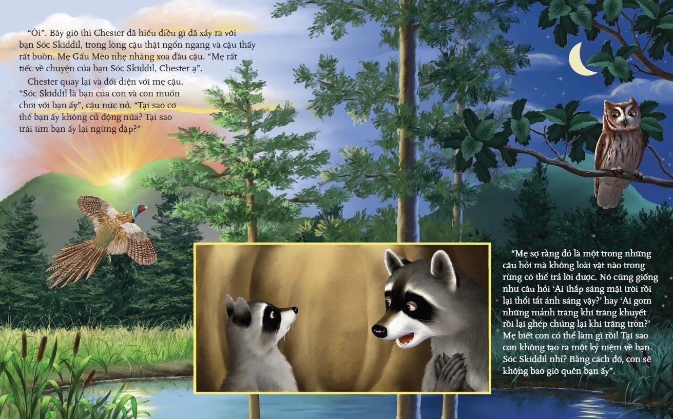 Bạn Chester rất buồn vì sẽ không còn được gặp lại bạn sóc Skiddil nữa, không còn được chơi chung với bạn ấy nữa. Mẹ Gấu Mèo đã thấu hiểu và đề nghị Chester đi tìm những thứ có thể gợi nhớ về bạn Sóc, những chú bươm bướm, bờ hồ, và cả quả sồi xinh đẹp. Tất cả những điều đó đều gợi nhớ cho Chester về bạn Sóc Skiddil, cũng như những kỉ niệm mà cả hai đã cùng chơi với nhau. Cuối cùng Chester đã hiểu được, dù không còn gặp lại bạn ấy nữa nhưng bạn Sóc Skiddil sẽ luôn được nhớ tới thông qua quả sồi bé nhỏ. Câu chuyện ngọt ngào mang đến cho độc giả thông điệp về tình yêu thương và giá trị của những kỉ niệm trong trái tim mỗi người.