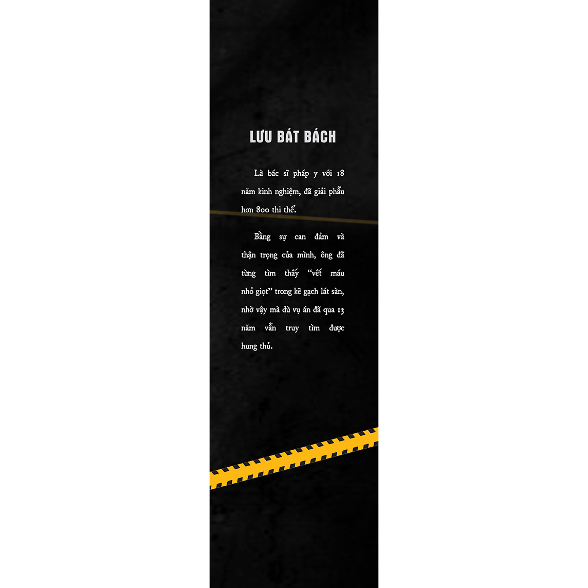 Cuốn sách bao gồm 5 vụ án phức tạp, đánh dấu sự trở lại của Lưu Bát Bách, bác sĩ pháp y nổi tiếng với con số 8 - 18 năm kinh nghiệm mổ xẻ cho 800 xác chết. Bằng lối miêu tả chi tiết và ghê rợn, tác giả sẽ đưa bạn quay trở về quá khứ, theo đuổi những hồ sơ tội ác kéo dài hàng chục năm, tưởng như không thể nào phá giải.