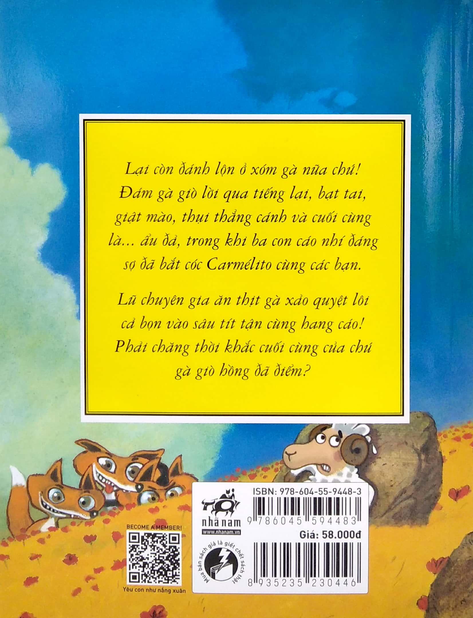 Đám gà giò lời qua tiếng lại, bạt tai, giật mào, thụi thẳng cánh và cuối cùng là ẩu đả, trong khi ba con cáo nhí đáng sợ đã bắt cóc Carmentino cùng các bạn.