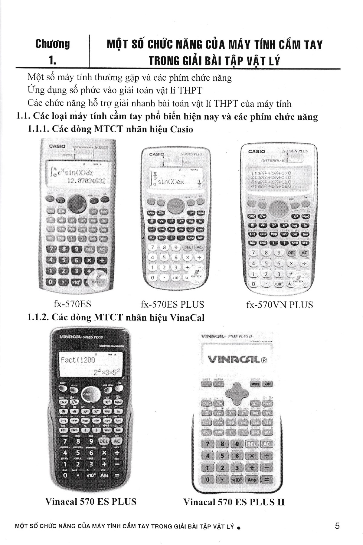 - Chương 1: Một số chức năng của máy tính bỏ túi trong giải bài tập Vật Lí