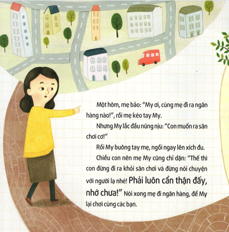 - Dạy trẻ cách tự bảo vệ: Sách hướng dẫn trẻ cách xử lý khi gặp phải những tình huống nguy hiểm, như cách nói "không" dứt khoát, cách tìm kiếm sự giúp đỡ từ người lớn đáng tin cậy.