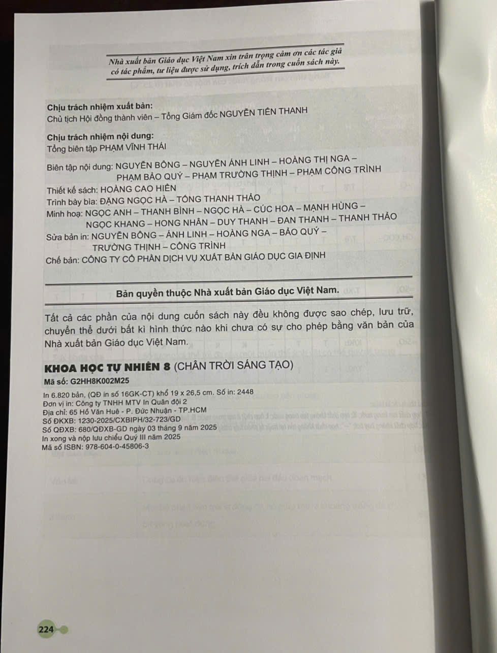 Thông số kỹ thuật Sách giáo khoa Khoa Học Tự Nhiên 8- Chân Trời Sáng Tạo (Kèm Nilon bọc Sách)