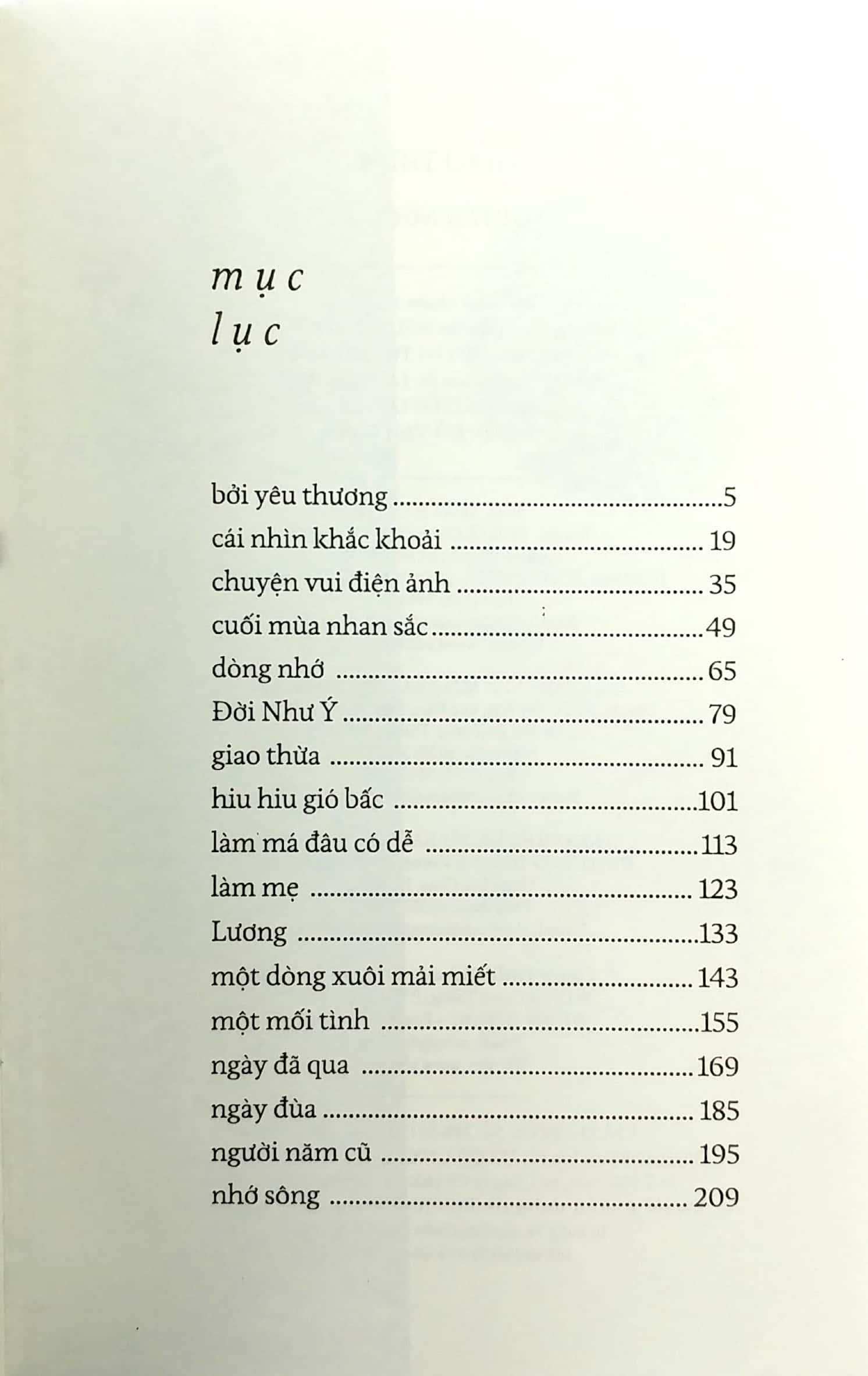 Cuốn sách này sẽ giới thiệu đến bạn đọc 17 câu truyện ngắn như: Bởi yêu thương, Cái nhìn khắc khoải, Chuyện vui điện ảnh, Cuối mùa nhan sắc, Dòng nhớ, Đời như ý, Giao thừa, Hiu hiu gió bấ