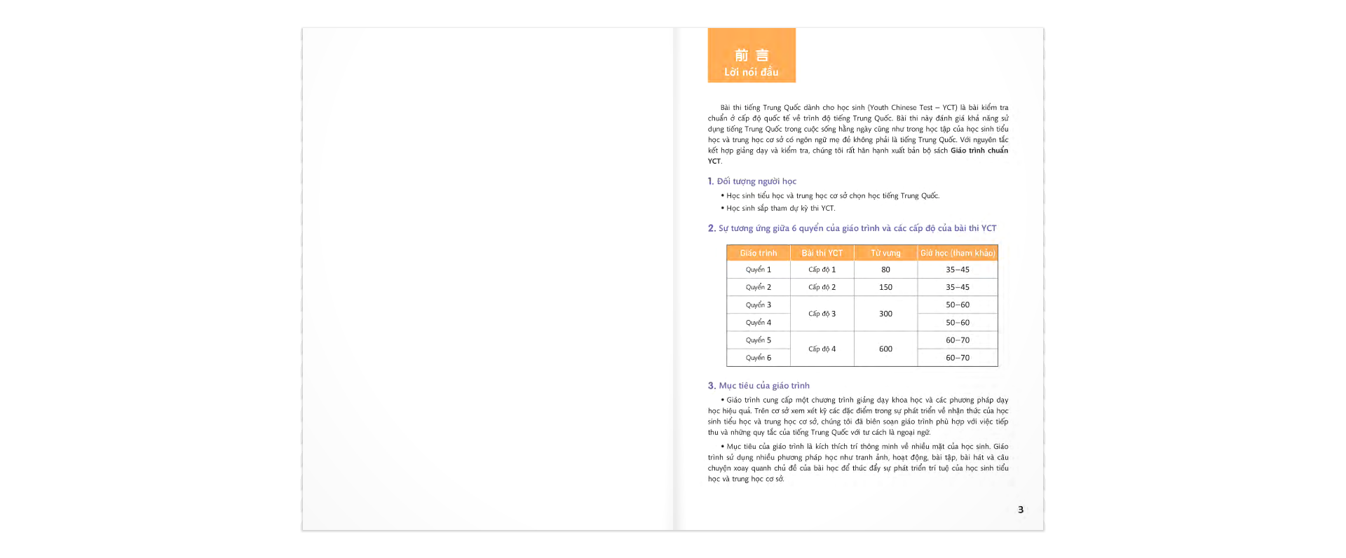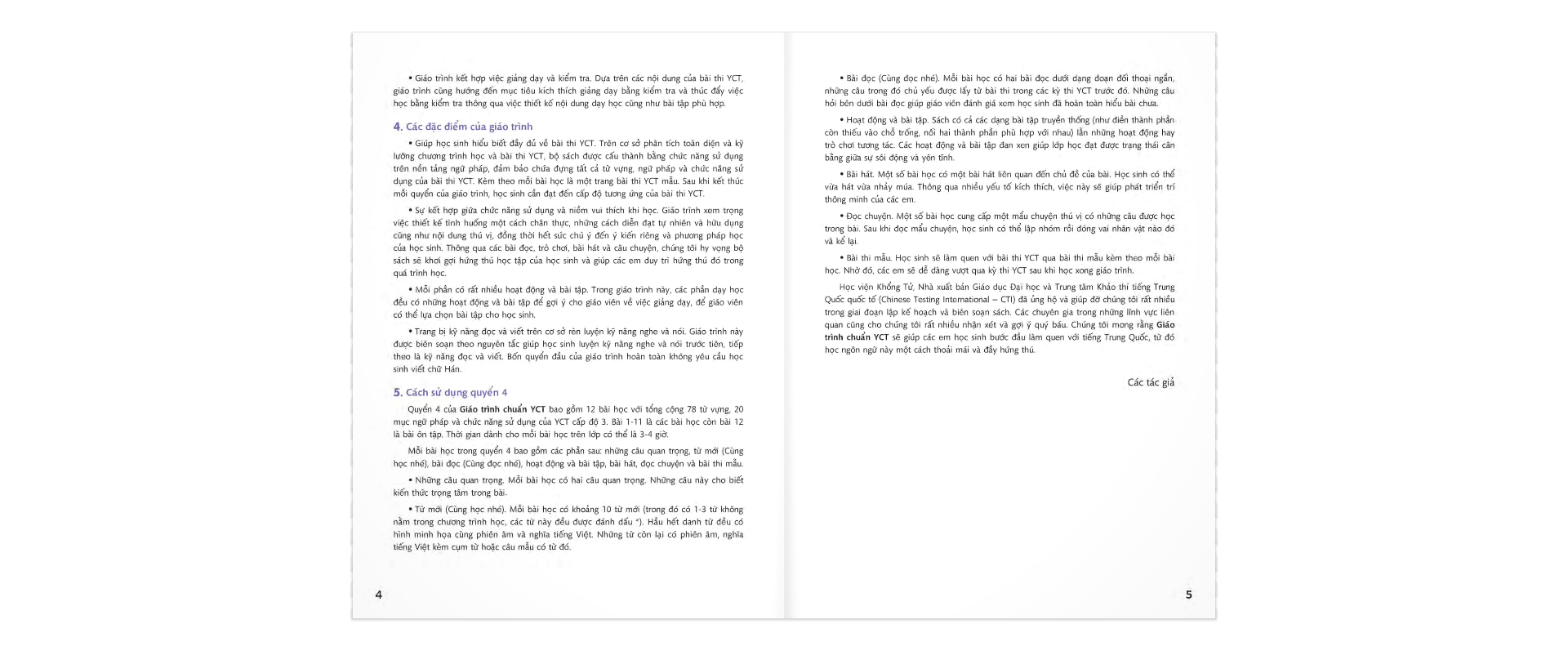 Bộ sách Giáo trình chuẩn YCT được biên soạn theo hướng bám sát các bài thi YCT đồng thời dựa trên nguyên tắc kết hợp giảng dạy và kiểm tra.