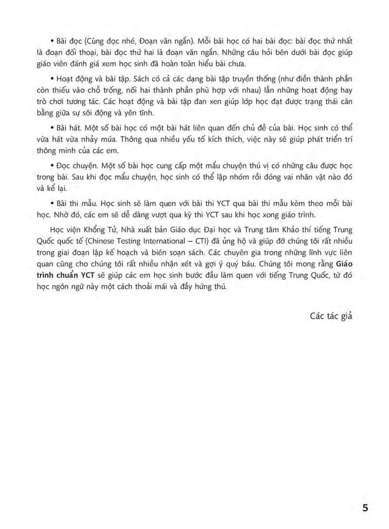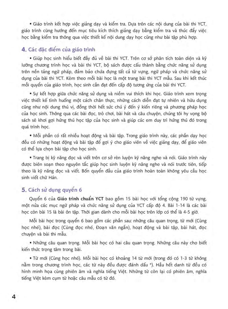 Bộ sách Giáo trình chuẩn YCT được biên soạn theo hướng bám sát các bài thi YCT đồng thời dựa trên nguyên tắc kết hợp giảng dạy và kiểm tra.