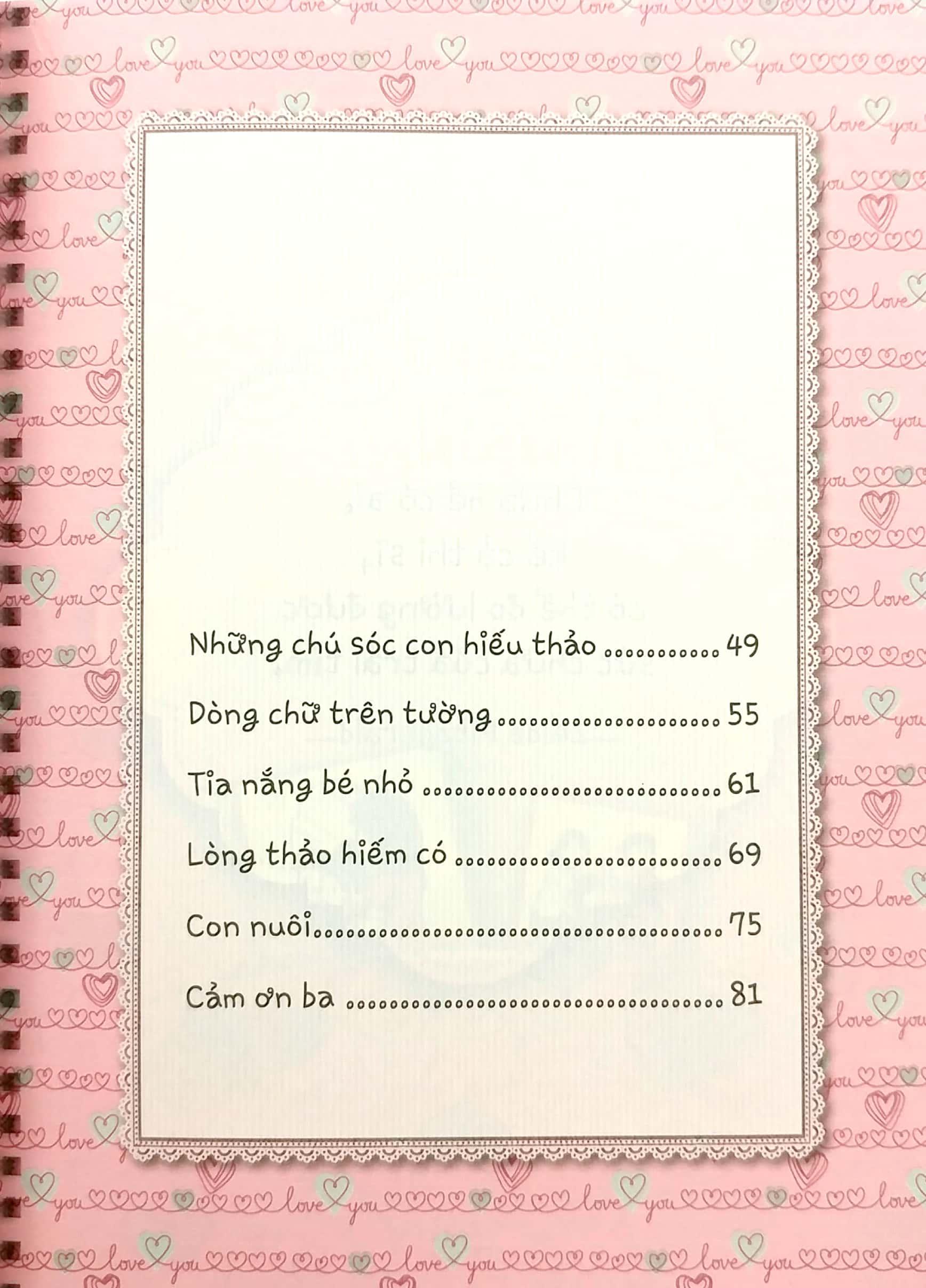 Mỗi câu chuyện được trình bày kèm với một câu tục ngữ, thành ngữ, ca dao, danh ngôn nhằm nhấn mạnh thêm thông điệp mà người tuyển chọn muốn gửi gắm. Không chỉ vậy, những bài học sau mỗi câu chuyện được xây dựng gần gũi, nhiều gợi mở cho người đọc triển khai thêm nhiều suy nghĩ sau khi đọc truyện, so sánh, áp dụng thực tế và tự xét bản thân.