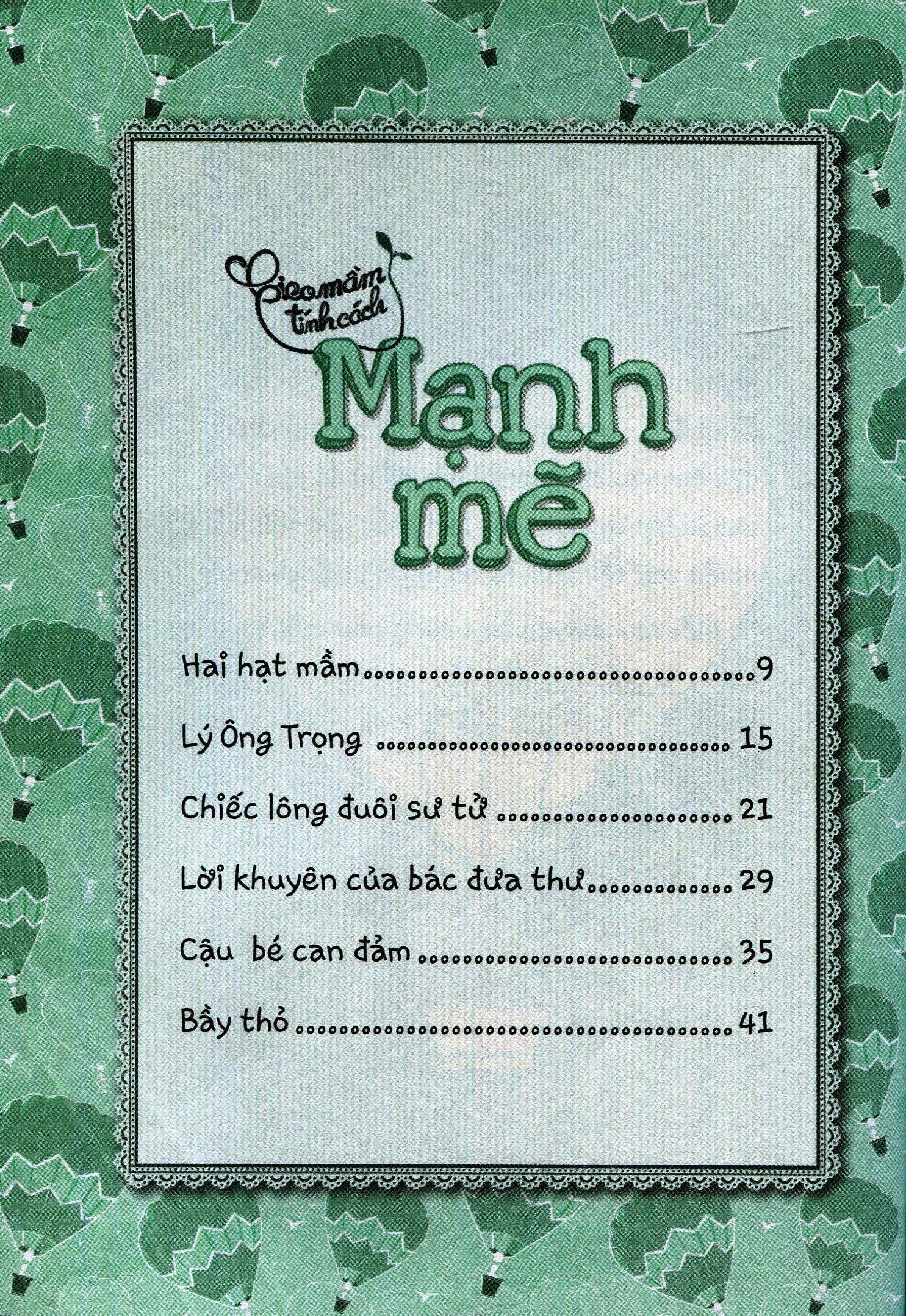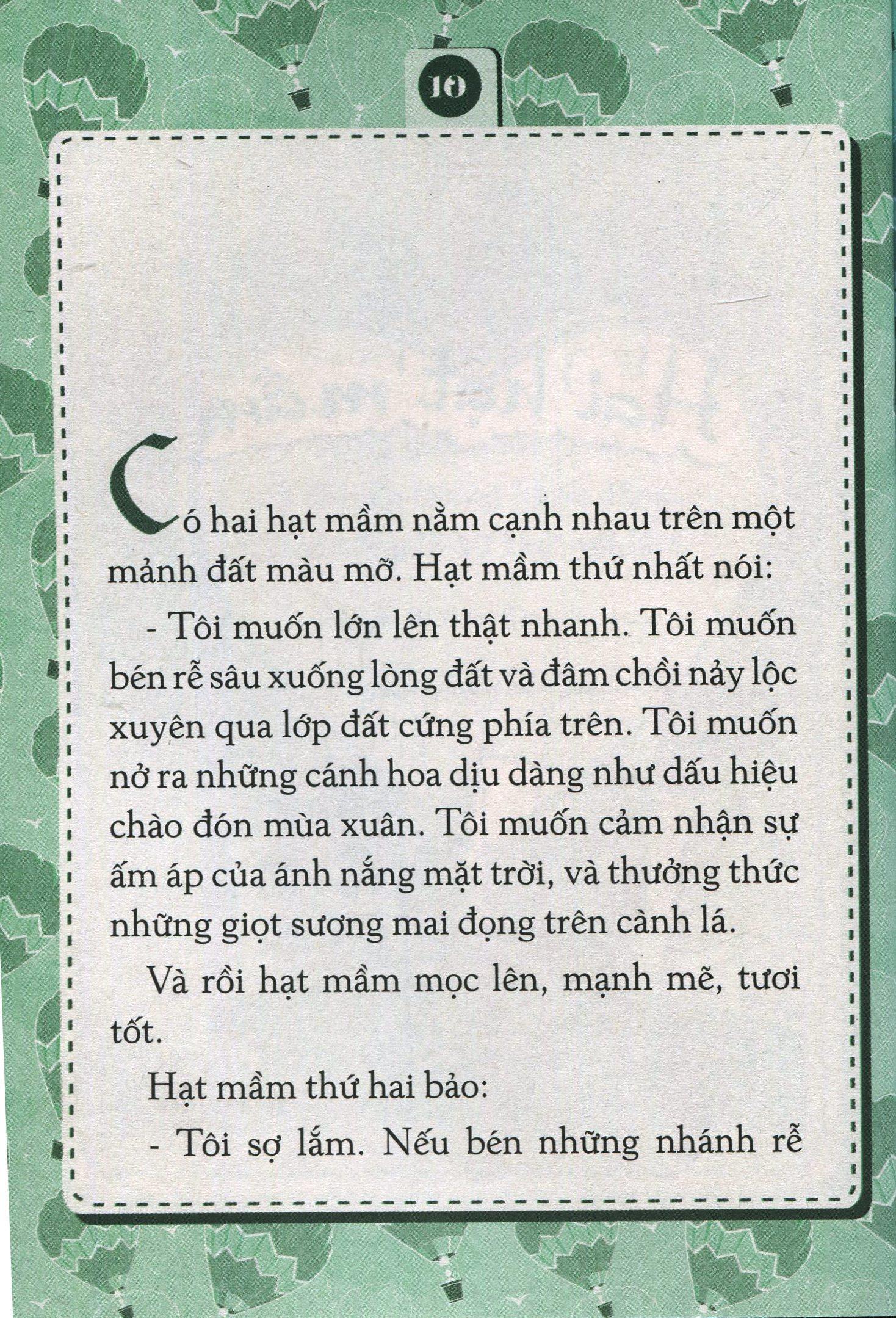 Tính cách của trẻ được hình thành từ rất sớm, thông qua sự giáo dục trong gia đình, qua những việc làm, lời nói, cách ứng xử của những người xung quanh. Nhưng ở độ tuổi nhỏ, không thể ép trẻ phát triển tính cách theo ý muốn của cha mẹ bằng lời dạy dỗ suông, bằng những bài học đạo đức khô khan, mà những tấm gương đẹp về tính cách đó phải được gieo vào trẻ từ từ bằng những câu chuyện sinh động, hấp dẫn.Bộ sách Gieo mầm tính cách (12 tập) là tập hợp những câu chuyện như vậy. Mỗi tập là một hạt giống tính cách gieo vào trẻ những bài học Tử tế, Tha thứ, Kiên trì, Thật thà, Quan tâm, Yêu thương, Mạnh mẽ, Tự tin, Ước mơ, Lịch sự, Hiếu thảo, Công bằng bằng những câu chuyện cảm động, đầy ý nghĩa đáng để suy ngẫm.