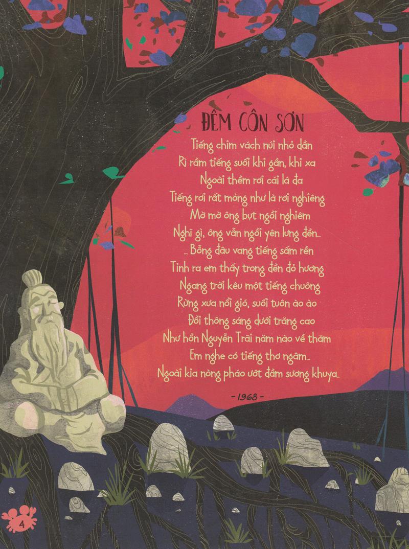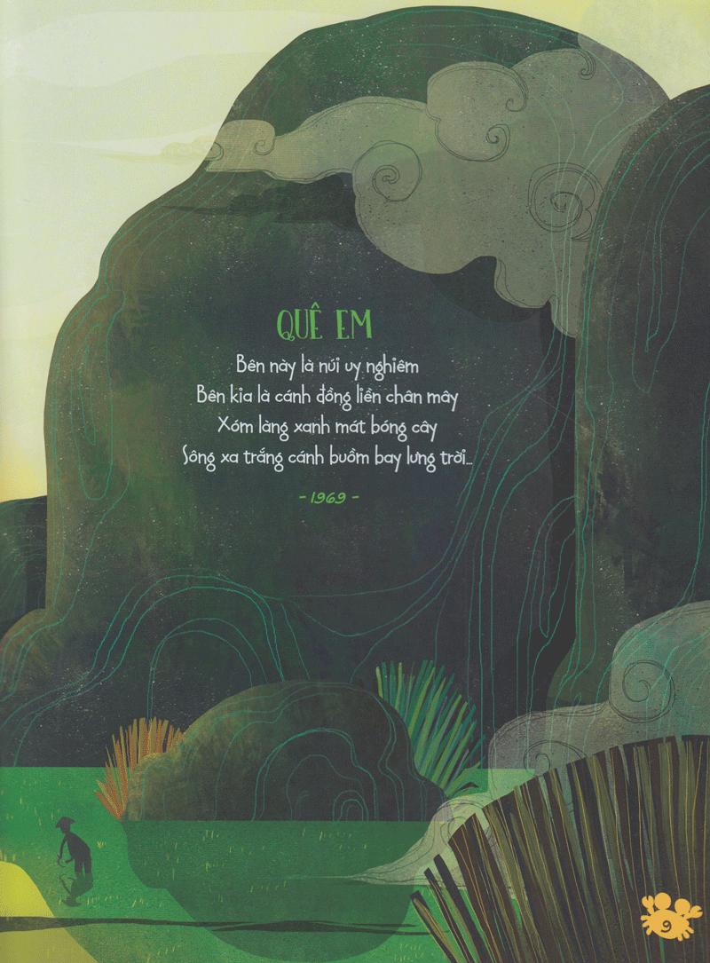 Góp phần tạo nên hình hài cho bộ sách này là những họa sĩ thế hệ 9X, với tuổi đời con rất trẻ. Trong số họ, có những người đã là họa sĩ có tiếng đạt nhiều giải thưởng trong nước và quốc tế nhưng cũng có người chỉ mới bước vào nghề. Họ đến từ nhiều miền đất khác nhau trên dải đất hình chữ S, mỗi người một lăng kính, một góc nhìn, một thế giới quan… khác biệt, nhưng tất cả đều bị chinh phục và được truyền cảm hứng từ những vần thơ êm ái thấm đậm tình yêu thương với quê hương đất nước của thần đồng thơ Trần Đăng Khoa, để từ đó vẽ nên bức tranh minh họa thật sống động và lãng mạn…