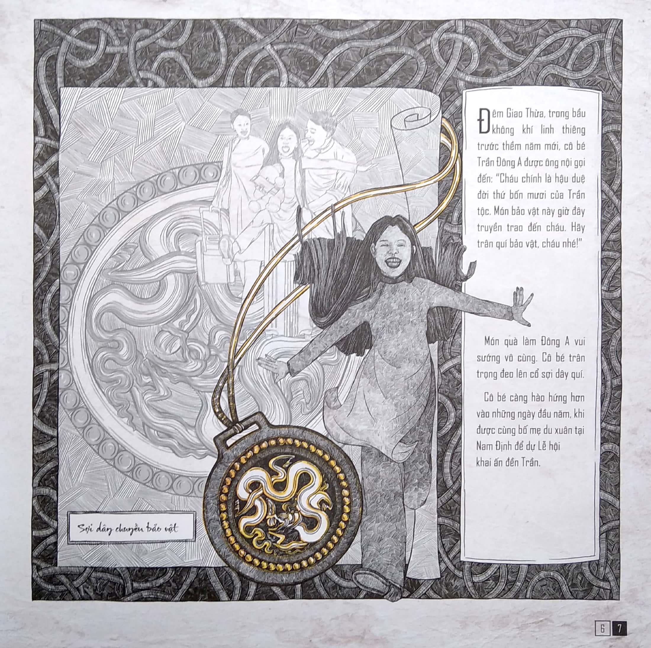 Cuốn sách được phát triển từ đồ án của một sinh viên mỹ thuật nên chất lượng phần tranh vẽ rất tốt, rất kì công từ khâu nghiên cứu sử liệu đến bước triển khai. Có những bức tranh đại cảnh mà nhìn tác giả tỉa nét đau lưng luôn. Về nội dung câu chuyện thì phần ý tưởng khá ổn, nhưng do khuôn khổ là một đồ án sinh viên nên phần triển khai câu chuyện khá đơn giản, hành văn chưa trau chuốt. Mình nghĩ cuốn sách này phù hợp với đối tượng độc giả thiếu niên, giúp các bạn khơi dậy niềm yêu thích lịch sử và mỹ thuật nước nhà. Mình hơi kỳ vọng sẽ thu nhặt được nhiều kiến thức chuyên sâu về mỹ thuật thời Trần - thì trong sách này lại chưa thể hiện rõ lắm. Giá mà tác giả có bổ sung phần quá trình nghiên cứu hình thành tác phẩm, các nguồn sử liệu, tư liệu mà tác giả đã nghiên cứu về hoa văn, phục trang, giáp trụ... thì tốt.