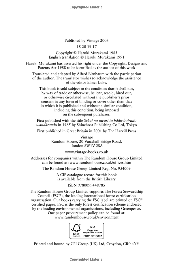 Thông số kỹ thuật Sách Hardboiled Wonderland And The End Of The World