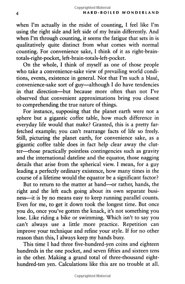 A narrative particle accelerator that zooms between Wild Turkey Whiskey and Bob Dylan, unicorn skulls and voracious librarians, John Coltrane and Lord Jim. Science fiction, detective story and post-modern manifesto all rolled into one rip-roaring novel, Hard-boiled Wonderland and the End of the World is the tour de force that expanded Haruki Murakami's international following. Tracking one man's descent into the Kafkaesque underworld of contemporary Tokyo, Murakami unites East and West, tragedy and farce, compassion and detachment, slang and philosophy.
