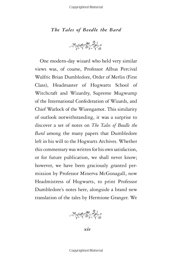 Never before have Muggles been privy to these richly imaginative tales: "The Wizard and the Hopping Pot," "The Fountain of Fair Fortune," "The Warlock's Hairy Heart," "Babbitty Rabbitty and Her Cackling Stump," and of course "The Tale of the Three Brothers." But not only are they the equal of fairy tales we know and love, reading them gives new insight into the wizarding world.