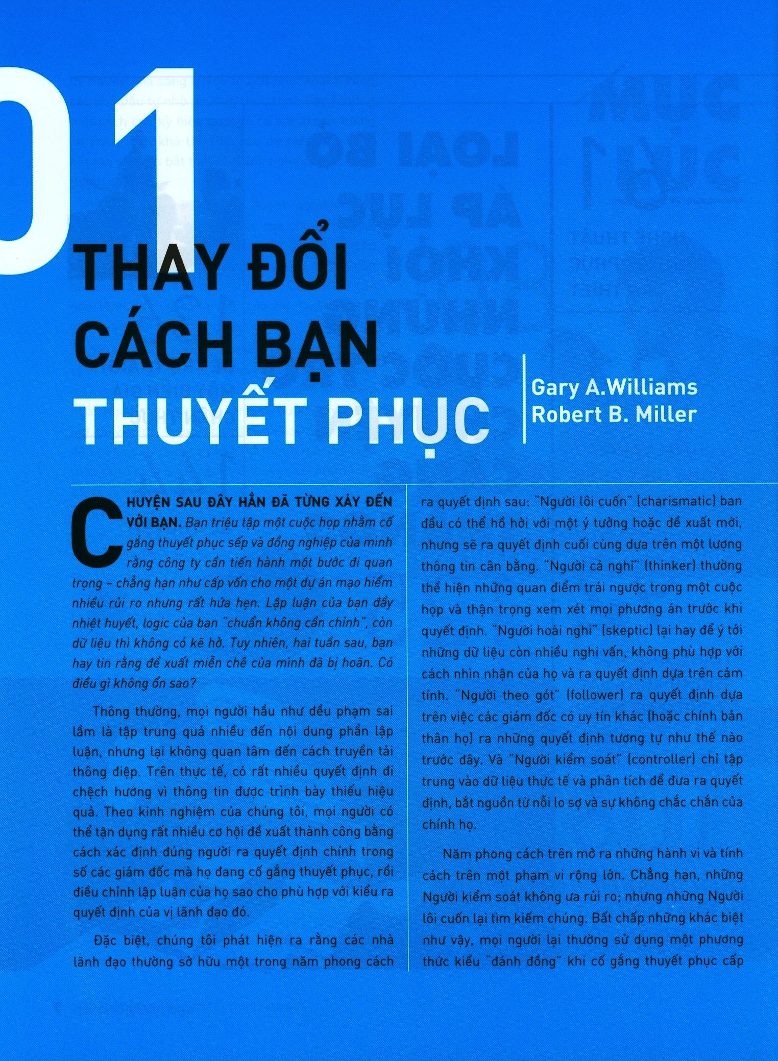 Tập ấn phẩm trình bày như một tờ tạp chí, nhiều màu, mực in nhòe một số trang. Nội dung: Các bài viết trình bày câu dài, một số câu lủng củng, đọc tới đọc lui vài lần mới đoán được nghĩa. Ví dụ trang 13 - câu dài và không được trau chuốt nên khá khó đọc: "Trong nghiên cứu của mình, chúng tôi đã phát hiện ra rằng các nhà lãnh đạo thường có 1 kiểu quyết định mặc nhiên rơi vào một trong năm nhóm khác biệt sau: Người lôi cuốn, Người cả nghĩ, Người hoài nghi, Người theo gót và Người kiểm soát". Tôi là người có chuyên môn về truyền thông nên quan tâm và đặt mua sách. Lời khuyên cho người chưa mua là nếu bạn có khả năng vừa đọc sách vừa suy luận và vừa phải tự biên tập lại để hiểu người dịch muốn nói gì thế mua. Còn với người lỡ mua như tôi mặc dù ráng đọc để đỡ tiếc tiền nhưng cảm thấy rất thất vọng và không xứng đáng với giá bán.