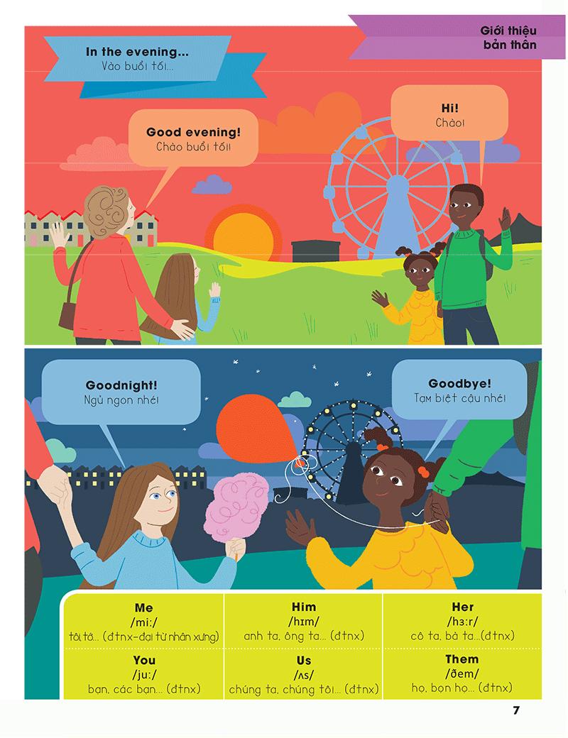 Nội dung song ngữ Anh – Việt kèm mã QR đọc tiếng Anh, giúp em luyện nghe và tập phát âm thật chuẩn xác ngay từ đầu.