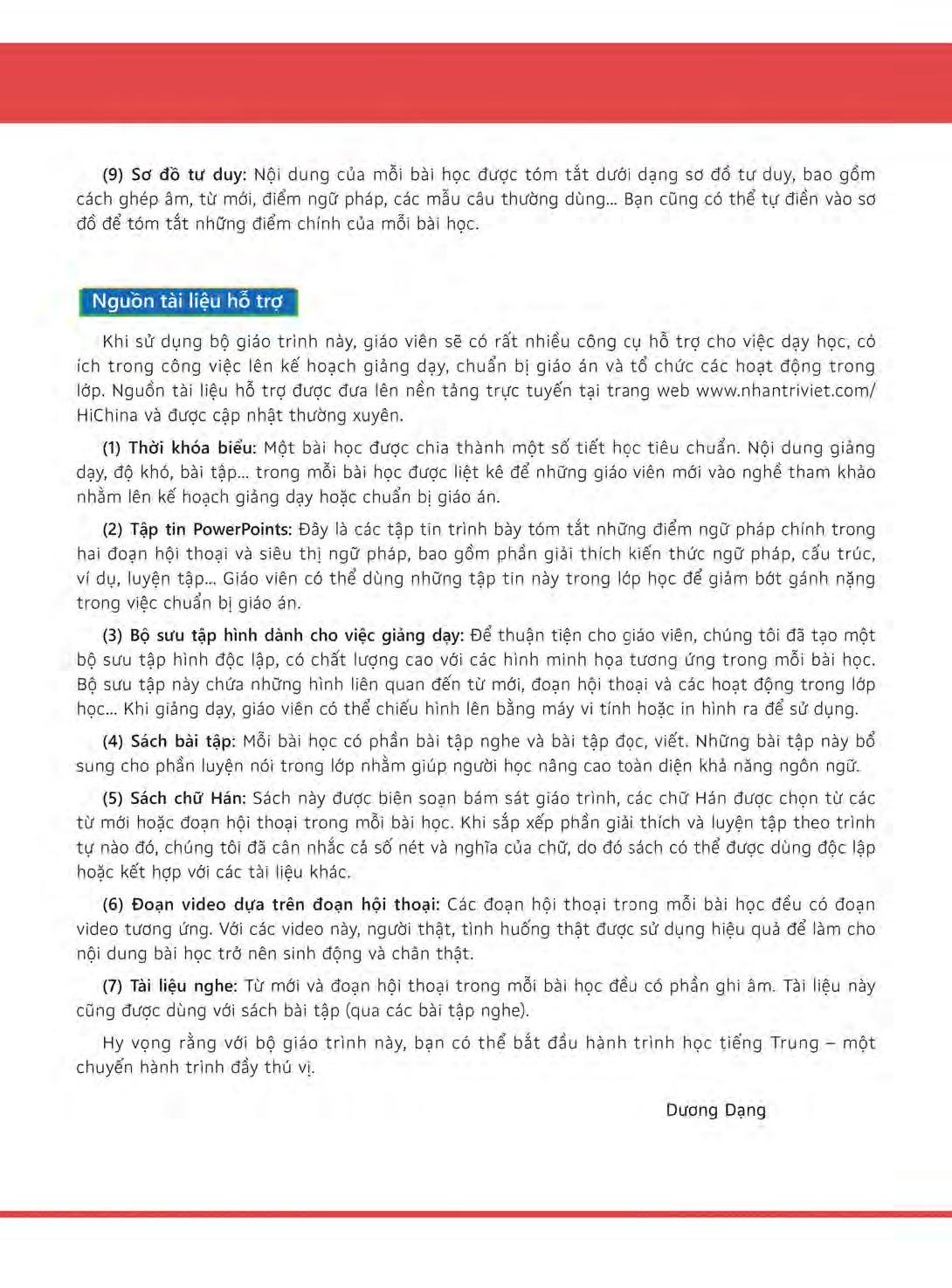 Kèm theo giáo trình là nguồn tài liệu hỗ trợ phong phú, vừa hữu ích cho việc dạy học của giáo viên trên lớp vừa thuận tiện cho những người có nhu cầu tự học.