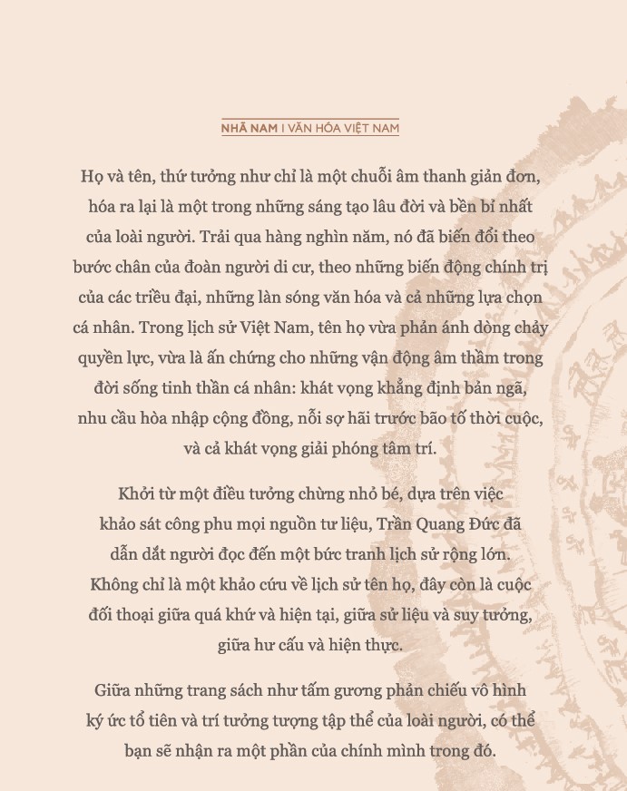 Không chỉ là một khảo cứu về lịch sử tên họ, đây còn là cuộc đối thoại giữa quá khứ và hiện tại, giữa sử liệu và suy tưởng, giữa hư cấu và hiện thực.