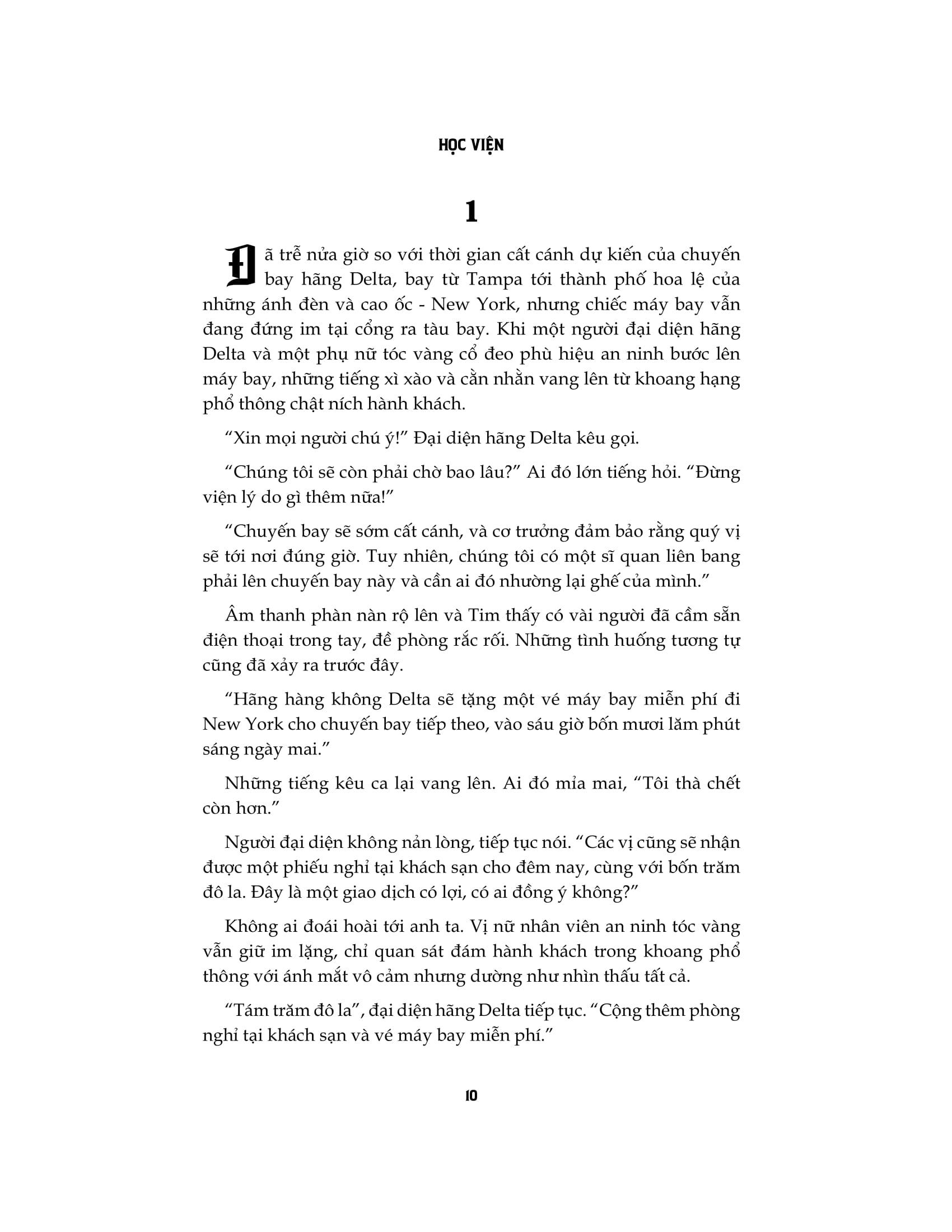 Nếu bạn vâng lời, bạn sẽ nhận được mã để mua bất kì thứ gì từ các máy bán hàng tự động. Nếu bạn không nghe theo, điều chờ đón bạn là những hình phạt tàn bạo. Mỗi khi có một đứa trẻ bị đưa tới Khu nửa sau và không bao giờ trở lại, Luke càng trở nên tuyệt vọng với việc trốn thoát ra ngoài và tìm sự giúp đỡ. Chưa từng có ai trốn thoát khỏi Học Viện.