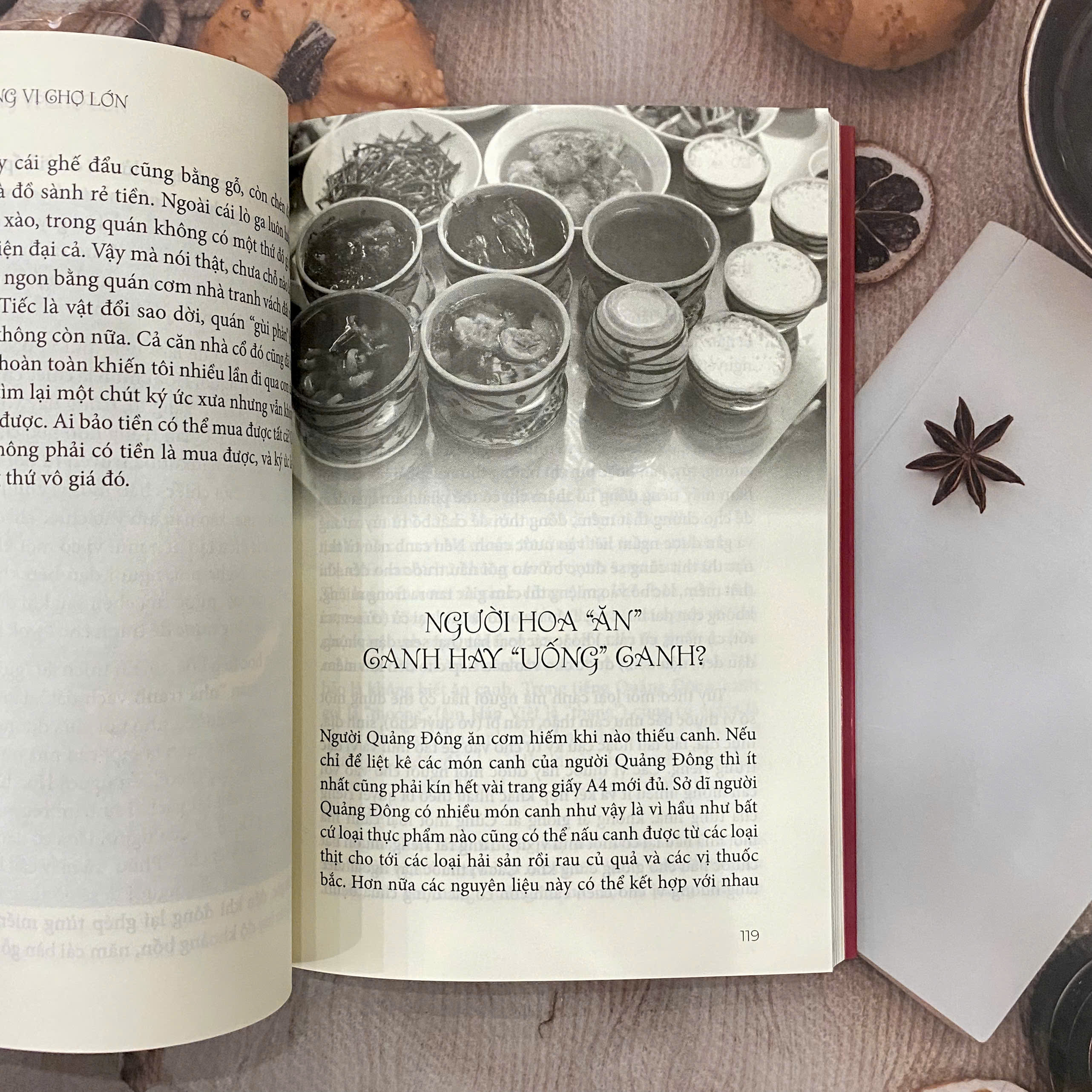 Huỳnh Chí Viễn viết về món Hoa ở Chợ Lớn bằng sự am hiểu của một người con lớn lên cùng mảnh đất này. Anh viết như đang lần giở lại ký ức của chính mình, nơi ẩm thực gắn liền với gia đình, với tiếng nói Quảng Đông, Triều Châu, với những quán ăn không bảng hiệu nằm sâu trong hẻm nhỏ, “hữu xạ tự nhiên hương” và với cả một nếp sống coi chuyện ăn uống là trung tâm của sự gắn kết con người. Trong cuốn sách này, món ăn không tách rời con người; hương vị không thể tách khỏi lịch sử, tập quán và ký ức cộng đồng.