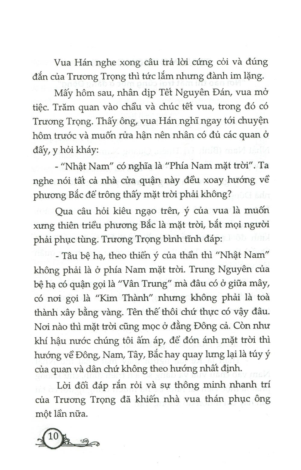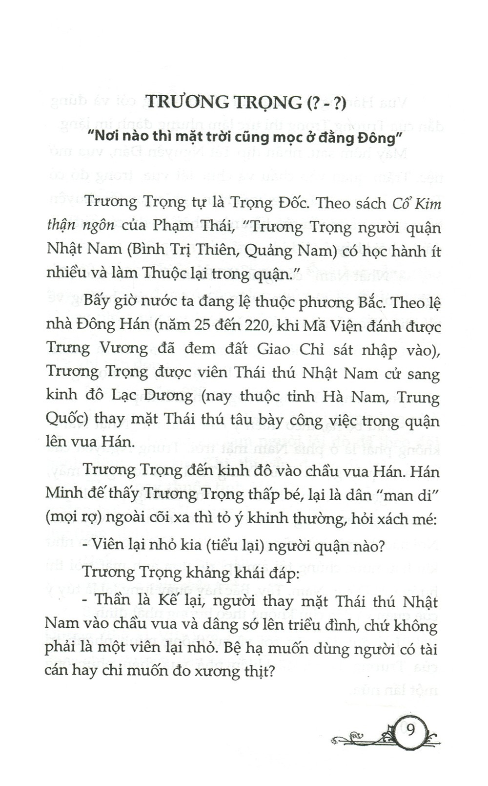 "Lịch sử Việt Nam có rất nhiều câu chuyện hay về các sứ thần. Dù tồn tại nhiều dị bản khác nhau, nhưng tinh thần chung là các sứ thần đều giữ vững khí tiết, làm tròn nhiệm vụ được ủy thác, trong rất cứ hoàn cảnh nào cũng không làm nhục lệnh vua, nêu cao quốc thể, dù cho phải trả giá bằng chính sinh mạng của mình." Sách hay, càng đọc càng cuốn. Các bạn nhỏ rất thích.