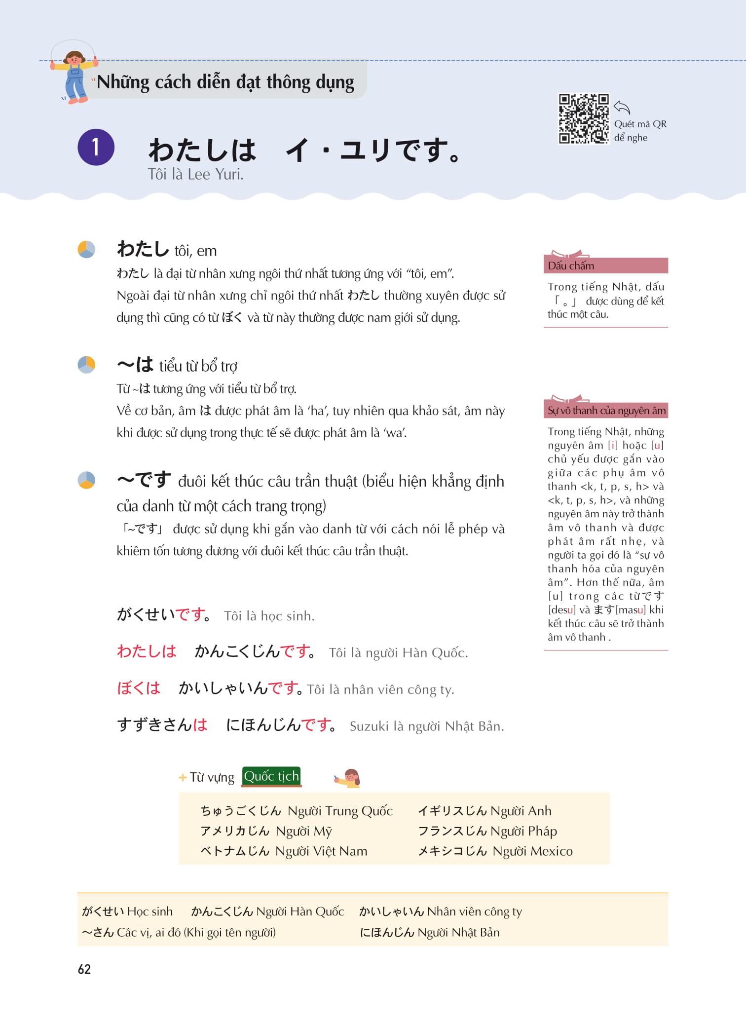 Cuốn sách giải thích rất dễ hiểu các âm trong tiếng Nhật như âm đục, âm bán đục, âm ngắt, trường âm, âm mũi và biến âm cùng hình minh họa sinh động, tạo hứng thú học tập.