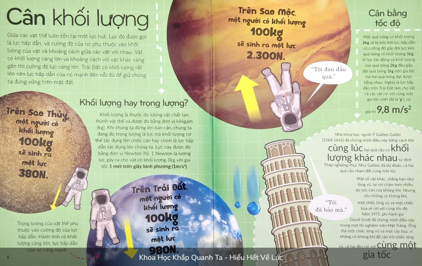 - “Khoa học khắp quanh ta” là một bộ sách khoa học thường thức. Đến với bộ sách này, các bạn nhỏ được làm quen với nhiều khái niệm ở trường, như các định luật Newton hay các loại lực hấp dẫn, lực đẩy, kéo, v…v… Nhưng bằng hình ảnh minh họa đẹp mắt cùng các ví dụ rất đời thường, các bạn sẽ thấy những kiến thức này không hề khó khăn hay khô khan như trong sách giáo khoa, mà rất thú vị và dễ hiểu! Bộ sách sẽ là bước đệm tuyệt vời để các bạn nhỏ làm quen và chuẩn bị cho những bài học khó trên trường lớp!