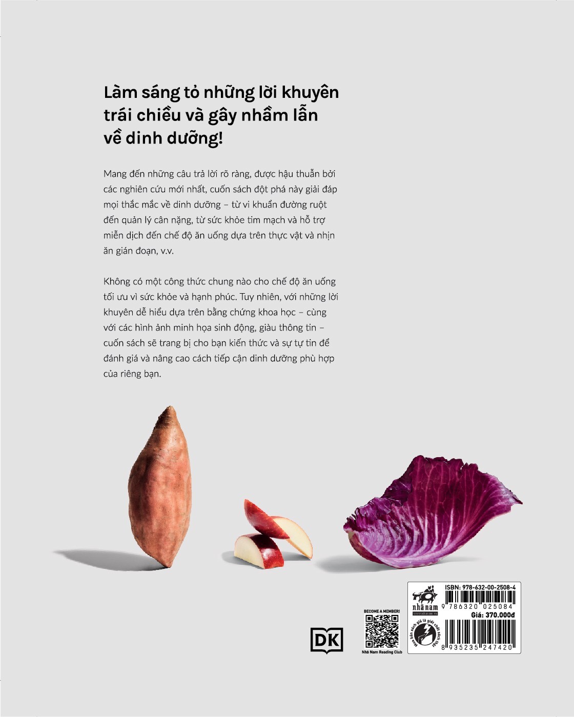 Mang đến những câu trả lời rõ ràng, được hậu thuẫn bởi các nghiên cứu mới nhất, cuốn sách đột phá này giải đáp mọi thắc mắc về dinh dưỡng – từ vi khuẩn đường ruột đến quản lý cân nặng, từ sức khỏe tim mạch và hỗ trợ miễn dịch đến chế độ ăn uống dựa trên thực vật và nhịn ăn gián đoạn, v.v.Không có một công thức chung nào cho chế độ ăn uống tối ưu vì sức khỏe và hạnh phúc. Tuy nhiên, với những lời khuyên dễ hiểu dựa trên bằng chứng khoa học – cùng với các hình ảnh minh họa sinh động, giàu thông tin – cuốn sách sẽ trang bị cho bạn kiến thức và sự tự tin để đánh giá và nâng cao cách tiếp cận dinh dưỡng phù hợp của riêng bạn.