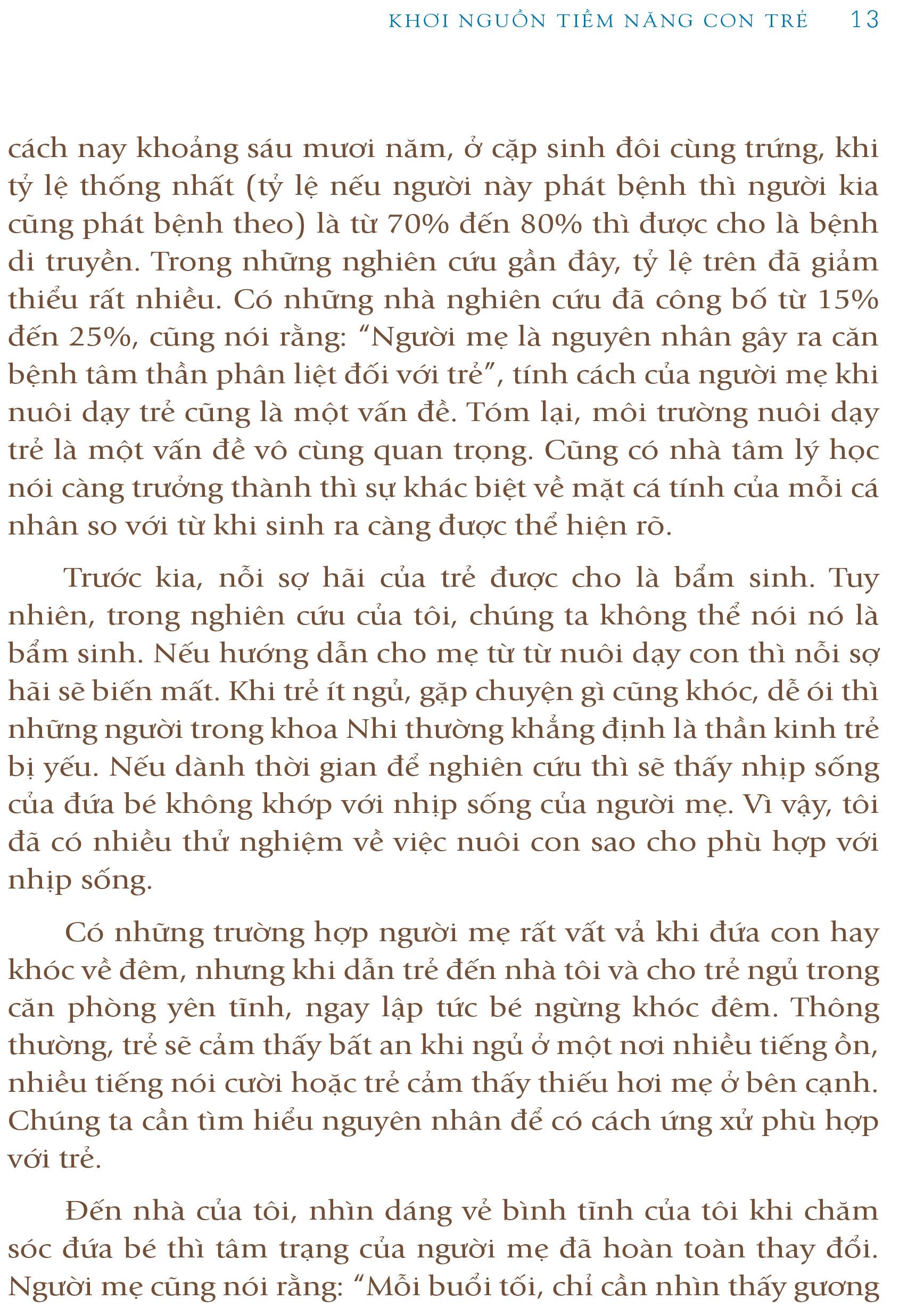 Trẻ em luôn tiềm ẩn khả năng vô hạn, và để cho khả năng của trẻ được phát huy cha mẹ hãy cùng nhau nỗ lực, làm cho thời thanh xuân của trẻ tràn đầy những động lực và sự cảm thông, chia sẻ thông qua cuốn sách Khơi Nguồn Tiềm Năng Con nhé!