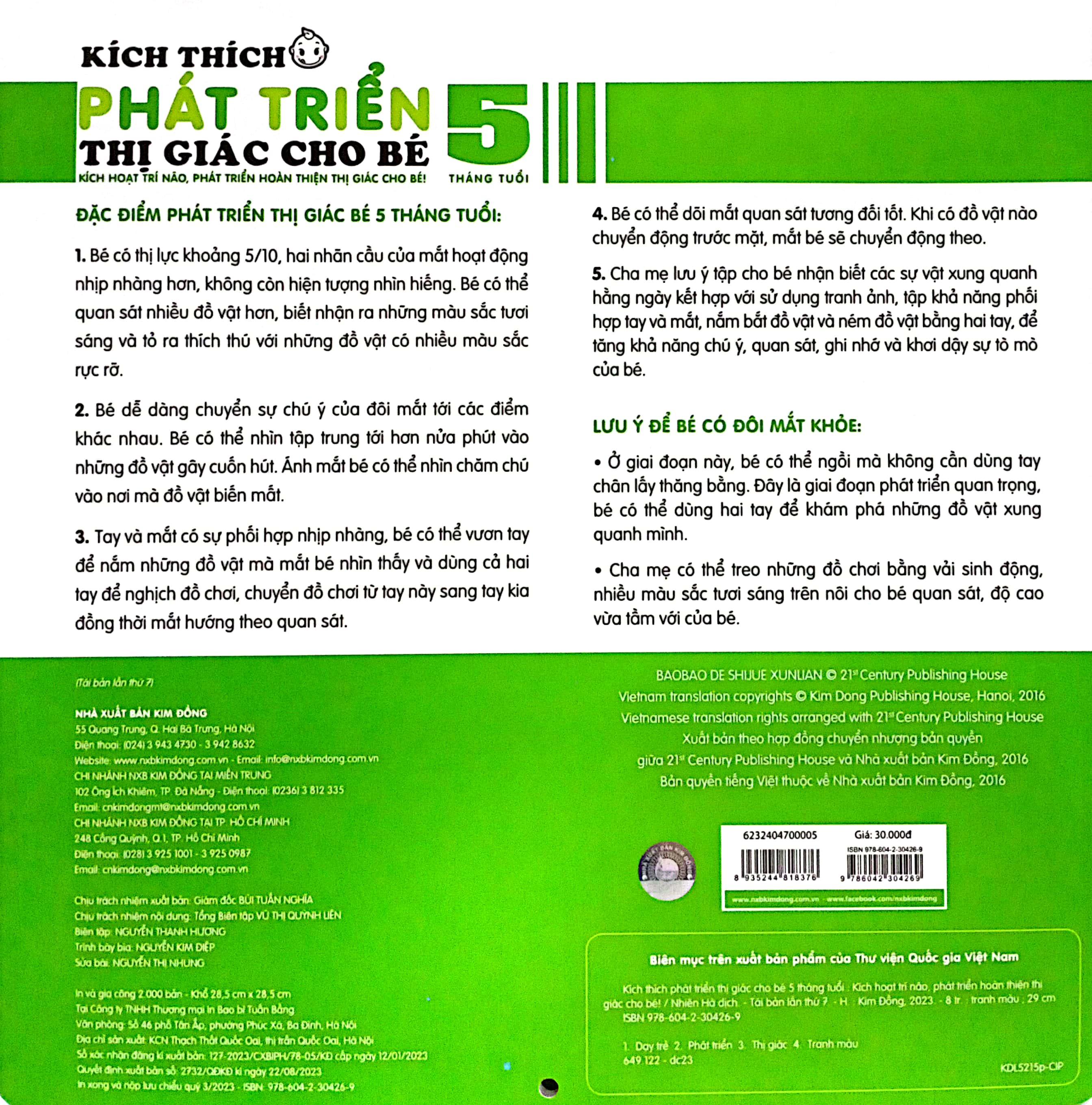 Thông số kỹ thuật Sách Kích Thích Phát Triển Thị Giác Cho Bé - 5 Tháng Tuổi (Tái Bản 2019)
