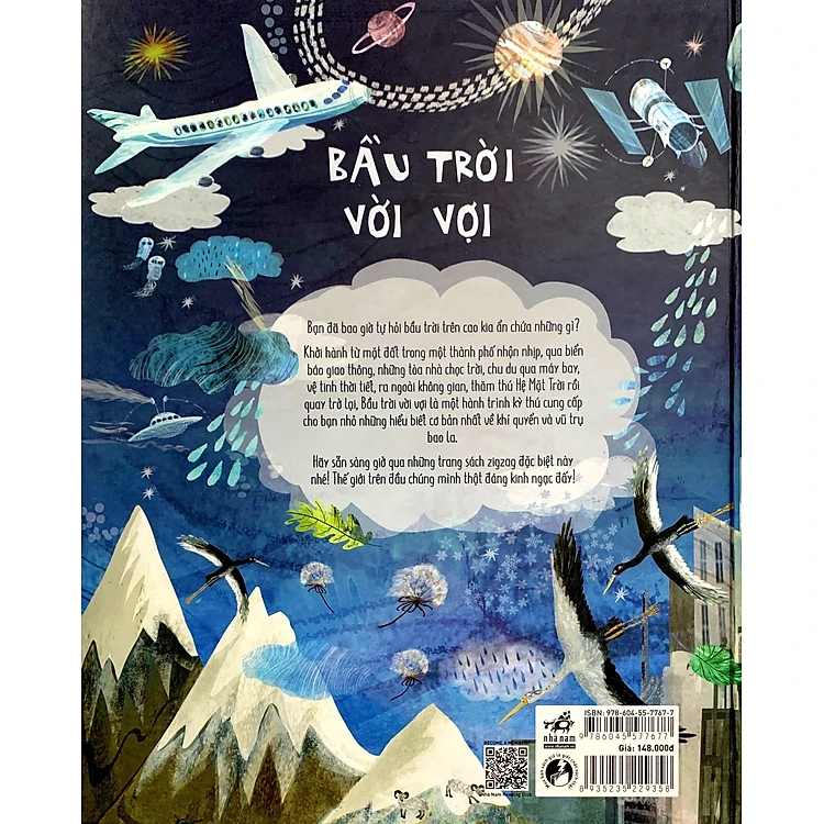 • Thiết kế độc đáo: Sách được thiết kế dưới dạng ziczac khổ lớn, mô phỏng chiều cao của bầu trời, giúp trẻ em dễ dàng hình dung và cảm nhận về không gian.