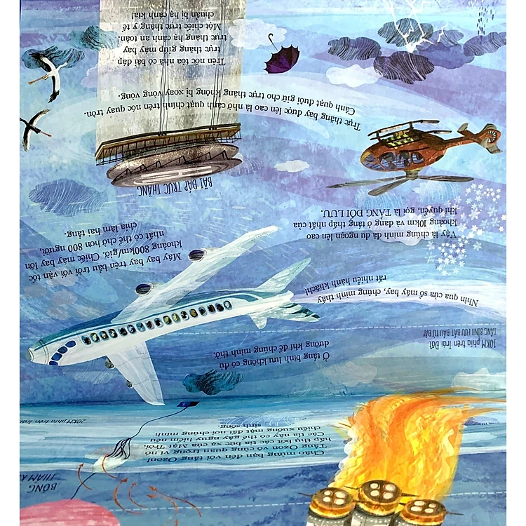 • Nội dung phong phú: Sách không chỉ dạy về bầu trời mà còn mở rộng hiểu biết về các hiện tượng tự nhiên và các phương tiện bay, giúp trẻ có cái nhìn toàn diện và đa chiều.