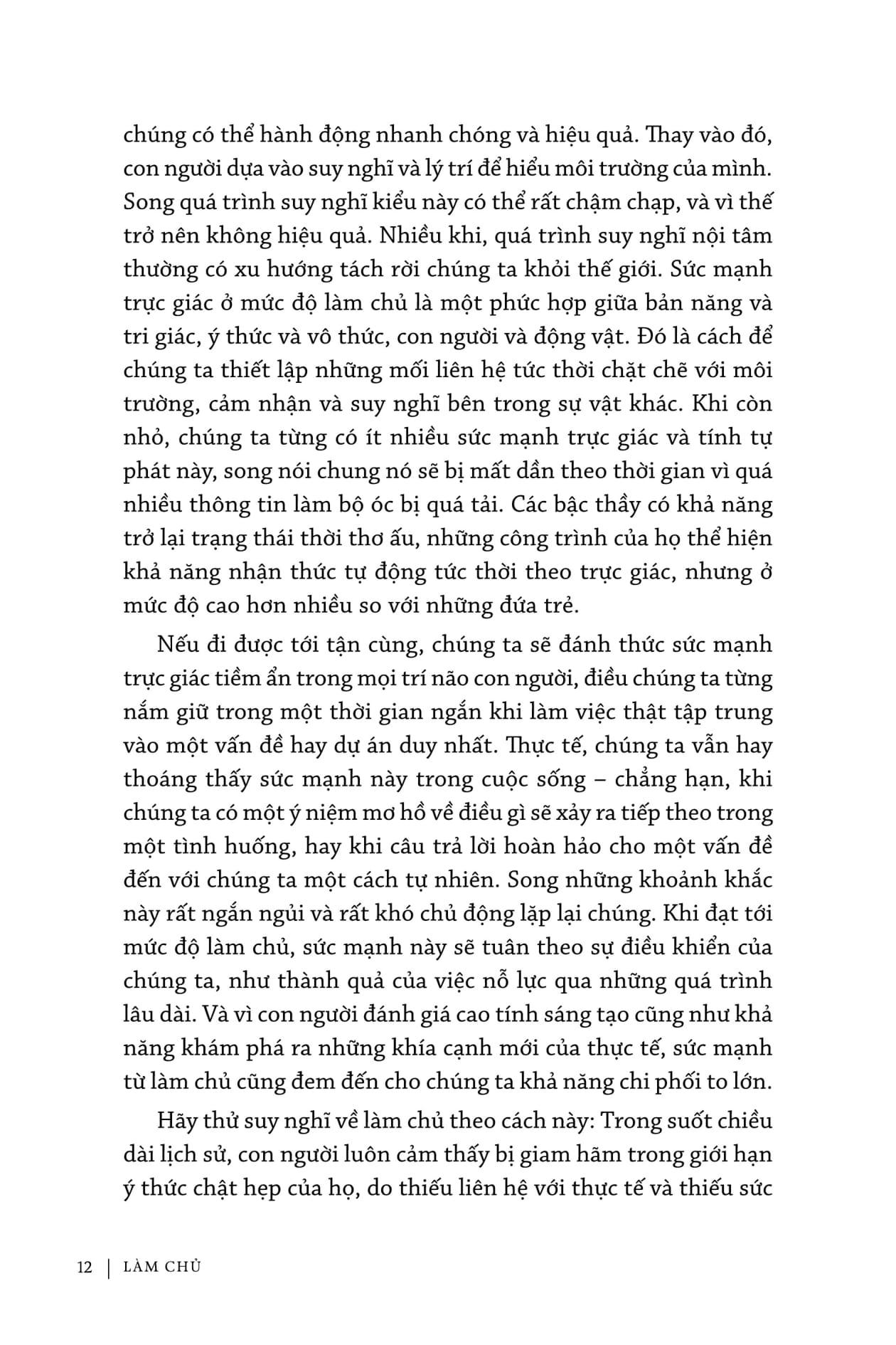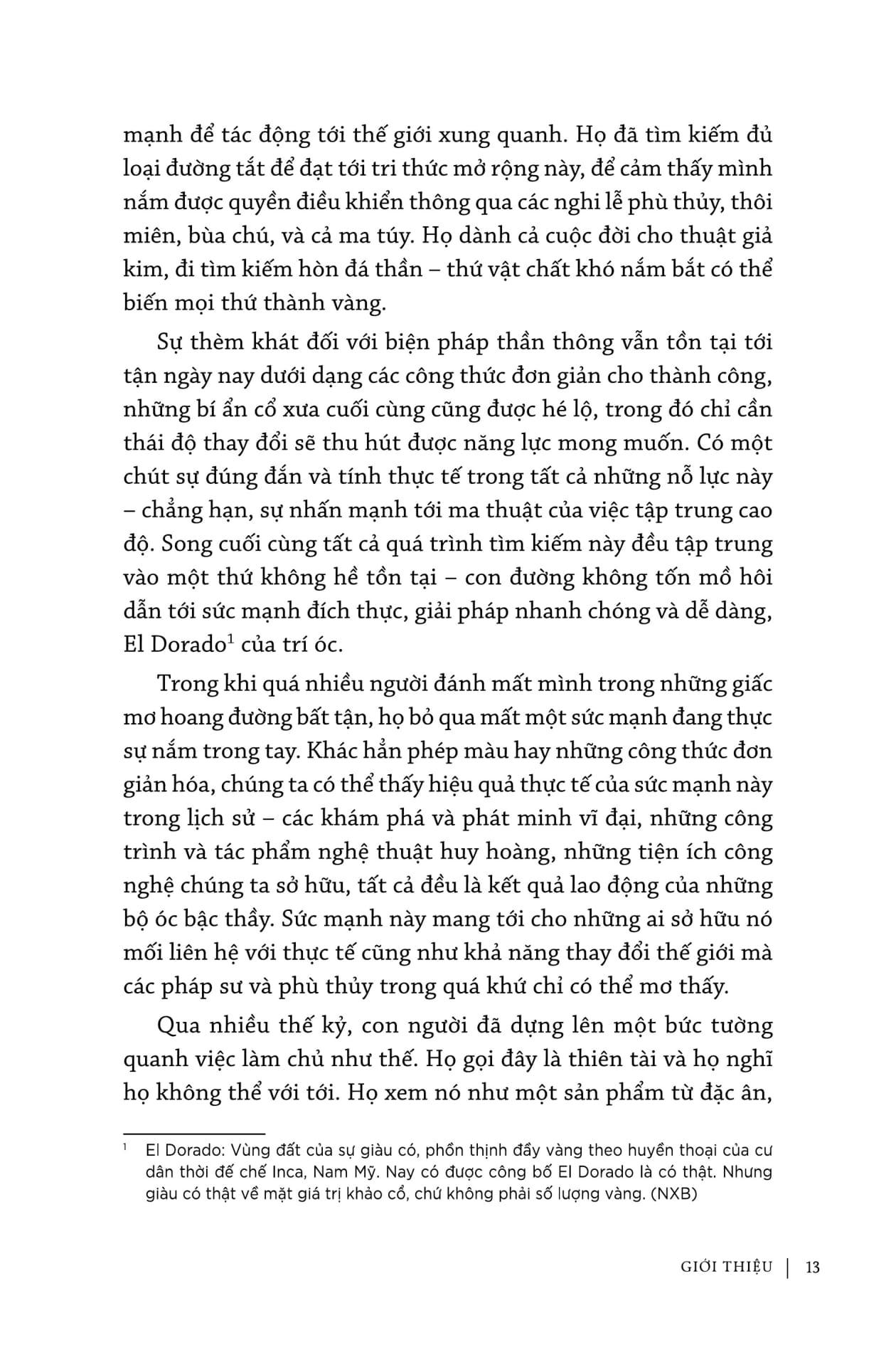 Cuốn sách này sẽ cho bạn thấy cần làm thế nào để tiếp tục quá trình học hỏi ở một cấp độ cao hơn. Nó sẽ chỉ ra những chiến lược không bao giờ lỗi thời để giải quyết vấn đề một cách sáng tạo, để giữ cho tư duy của bạn thông suốt, có khả năng thích ứng cao. Cuốn sách này sẽ cho bạn thấy cách tiếp cận những tầng trí tuệ nguyên thủy bản năng hơn, cách vượt qua những chỉ trích đầy ghen tị vốn không thể tránh khỏi sẽ xuất hiện trên bước đường bạn đi. Nó sẽ chỉ ra những quyền năng đến với bạn thông qua làm chủ, chỉ cho bạn tìm đúng hướng tới cảm nhận trực giác nội tại về lĩnh vực của bạn. Cuối cùng, nó sẽ giúp bạn làm quen với một triết lý, một cách nghĩ sẽ giúp bạn dễ dàng đi theo con đường này hơn.