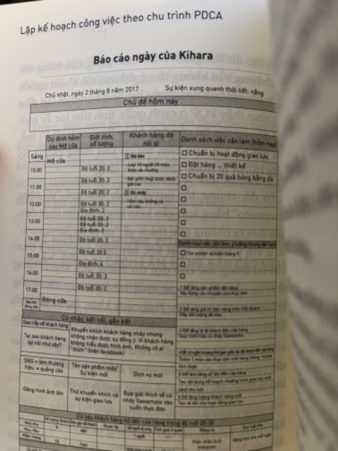LẬP KẾ HOẠCH CÔNG VIỆC THEO CHU TRÌNH PDCAThời đại có thể kinh doanh dựa vào“cảm tính và kinh nghiệm” đã kết thúc. Về sau, chỉ những người chủ doanh nghiệp nhìn rõ và phân tích được một cách sáng suốt những hiện thực đang diễn ra trên thế giới và bản thân mình hàng ngày, quy luật hóa những việc làm tốt và sửa lại quỹ đạo cho những việc không tốt , tạo ra thói quen không trì hoãn những ý tưởng mà mình nghĩ ra và thực hiện một cách chắc chắn, sẽ có thể đối ứng với thời đại biến đổi khốc liệt. Bởi thời đại ngày càng khó khăn, báo cáo ngày PDCA là vũ khí sống còn của các doanh nghiệp vừa và nhỏ. Cuốn sách “Lập kế hoạch công việc theo chu trình PDCA” chính là giới thiệu của Yoshiki Nakazaku về phương pháp thực hiện điều đó. Vậy thì, nếu bạn nghe nói rằng chỉ cần làm một công việc tốn khoảng 20 phút một ngày nhưng sẽ tăng doanh thu lên gấp đôi thì bạn có thực hiện không?