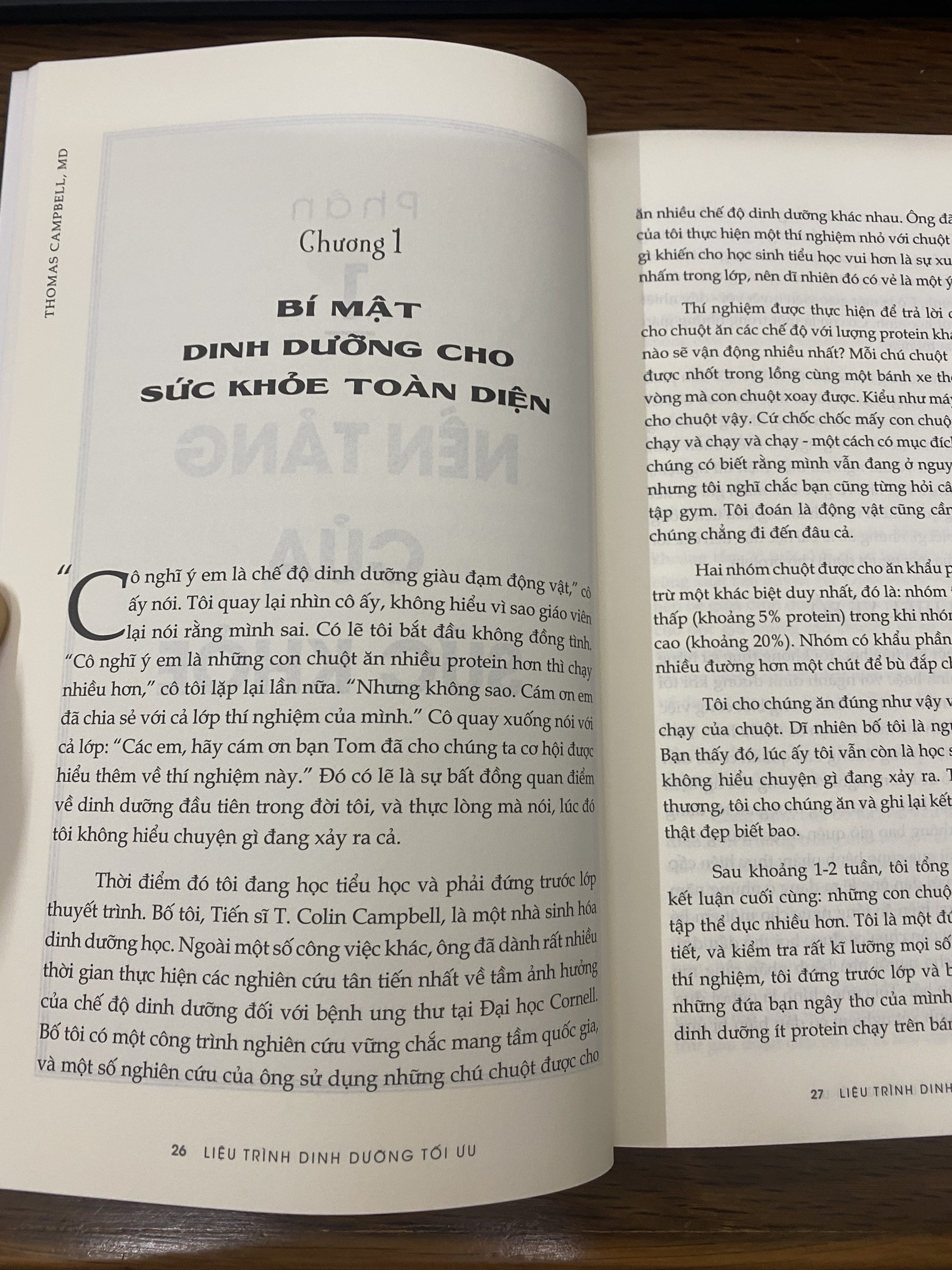 - Chín năm sau khi Bác sĩ Thomas cùng với cha của mình, Tiến sĩ T.Collin Campbell viết cuốn Sách The China Study (Bí mật dinh dưỡng cho sức khoẻ toàn diện). Bác sĩ Thomas thấy rằng: cần phải đưa thông tin chi tiết hơn về việc làm thế nào để thay đổi chế độ ăn hiện tại của bạn sang chế độ ăn thực vật toàn phần dễ dàng; đảm bảo đầy đủ chất dinh dưỡng thông qua hướng dẫn mua sắm; phân biệt các loại thực phẩm “tốt – không tốt”; thực phẩm cần có trong gia đình; công thức nấu ăn tuyệt vời. Đó là lý do cuốn sách “Liệu trình dinh dưỡng” được ra đời.